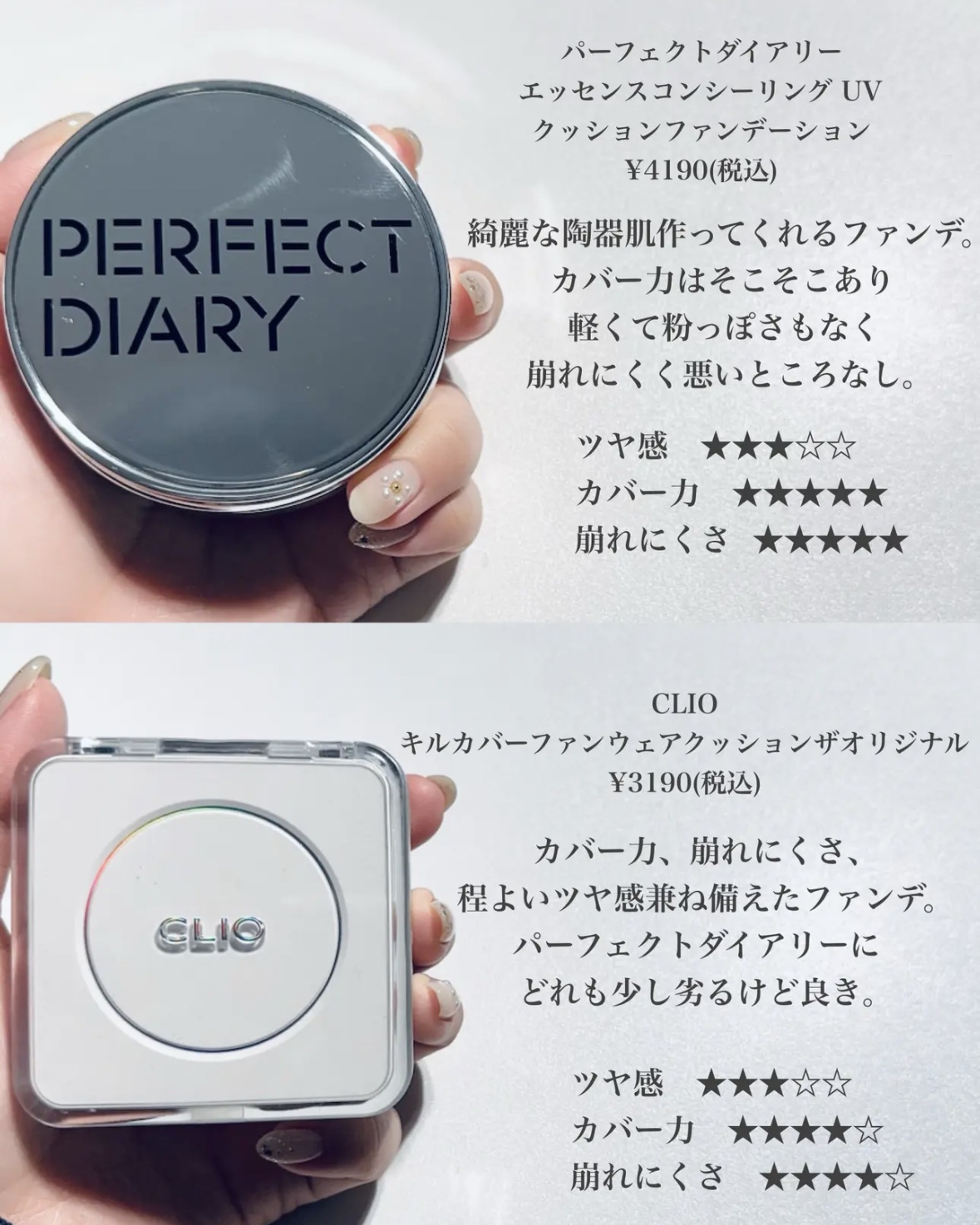 素肌感出したいから基本的にはカバー力高いものは苦手です。 ただTゾーンめっちゃ崩れてる!っていうのも何個かあります。 あくまで個人の感想なので、購入時少しでも参考になれば嬉しいです!
