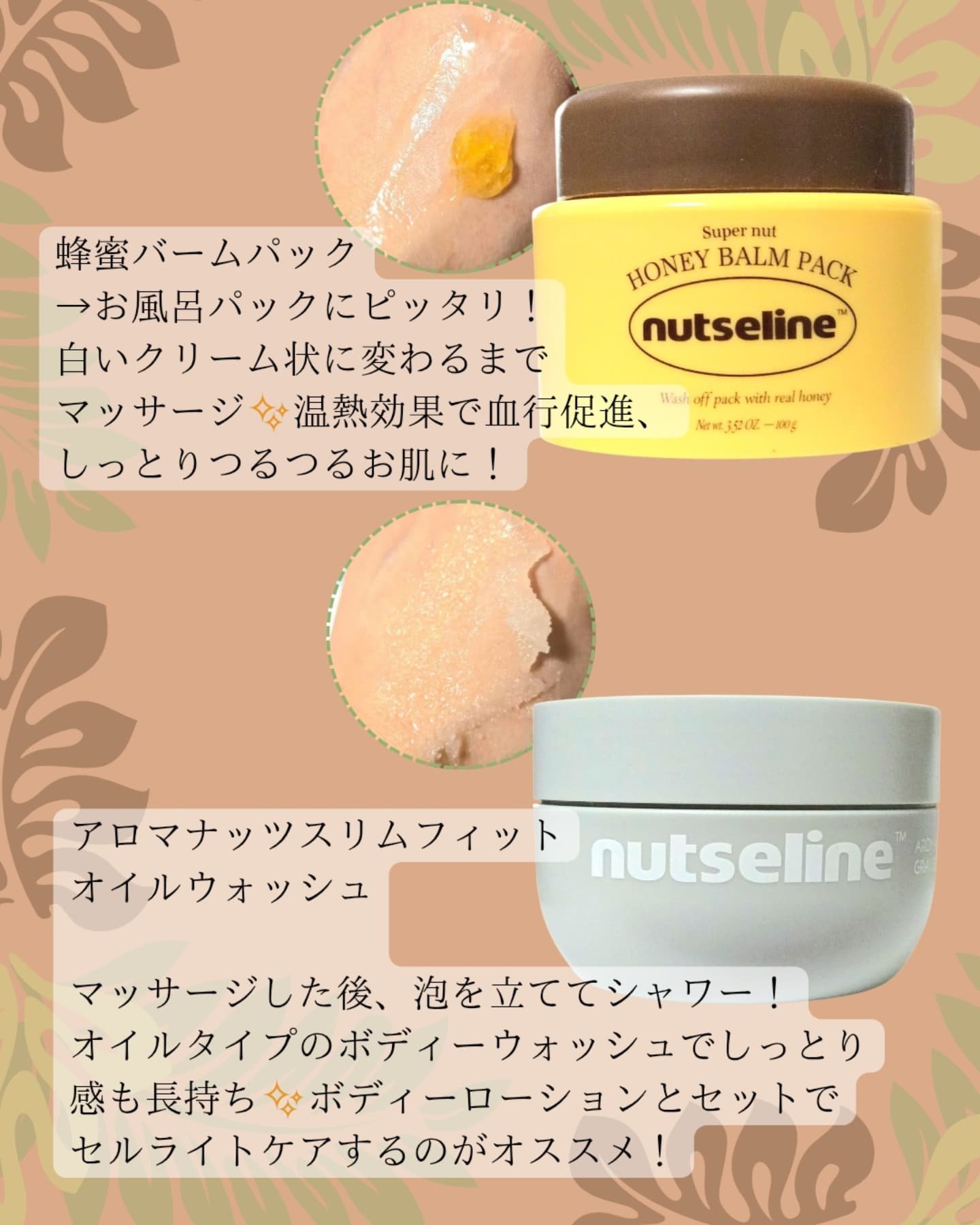#PRnutseline(@nutselineJP)提供/・アロマナッツスリムフィットオイルウォッシュ・ナッツスリムフィットボディローション・グレースクラブ・蜂蜜バームパック・ナリシングバーム・シカバーム洗って流して、なめらかボディに革命を!...