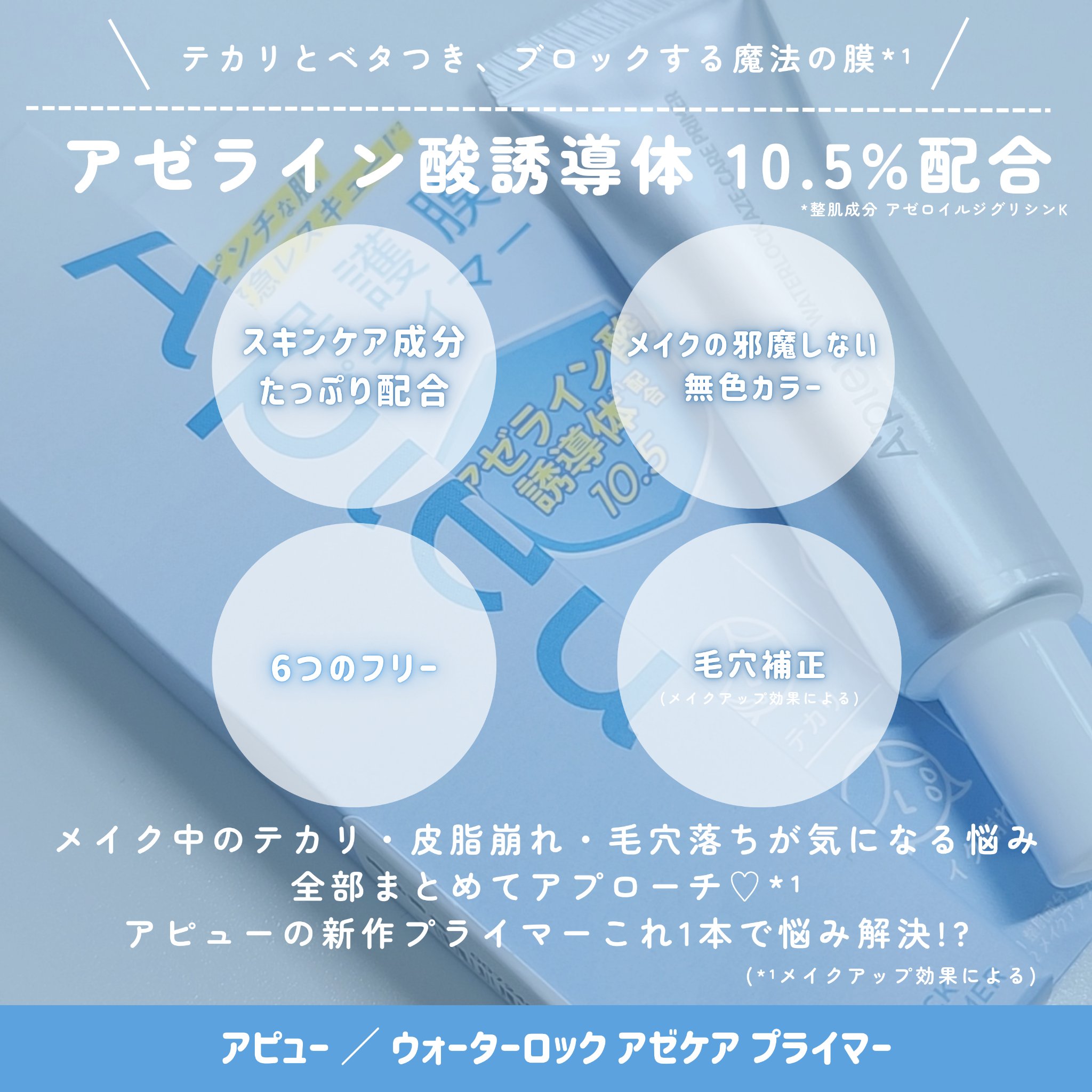 下地にもアゼライン酸の時代‼️A'pieuウォーターロックアゼケアプライマーアピューの新作下地☀️話題の成分「アゼライン酸誘導体(*1)」がついにメイク下地にも配合!気になる皮脂や毛穴の詰まりなど、たくさんの人が抱える肌悩みにメイク中もアプロ...