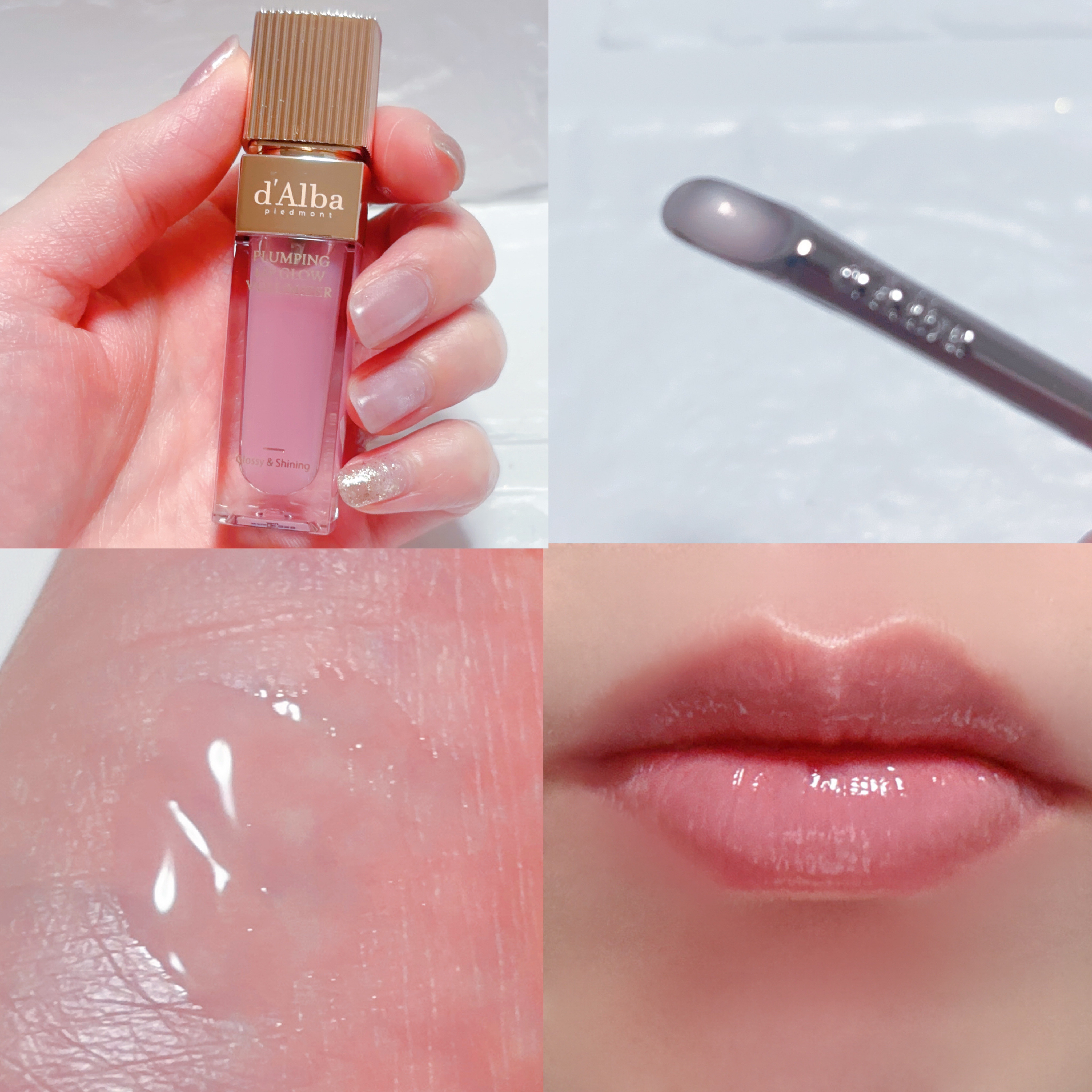唇にのせるとキラキラはしますが、色味はないですが…個人的に単品でつけると 血色の悪い唇になってしまうので 手持ちのリップにプラスした方が、可愛いと思います💗 肌馴染みがよく、使いやすい色です☺️ ピンクがかった赤でゴールドラメがキラキラと美しいです💖 発色もよく使いやすい色だと思います☺️ ラメが光の角度できらめいて、また違う印象に見え美しいです❤️ テクスチャーは軽めで、アプリケーターも小ぶりで塗りやいです! 香りはレッドベリー・フローラル・バニラ・ムスクの甘い香りがしますが、甘い香りが苦手な私でも、キツくなく心地よく使用できました☺️