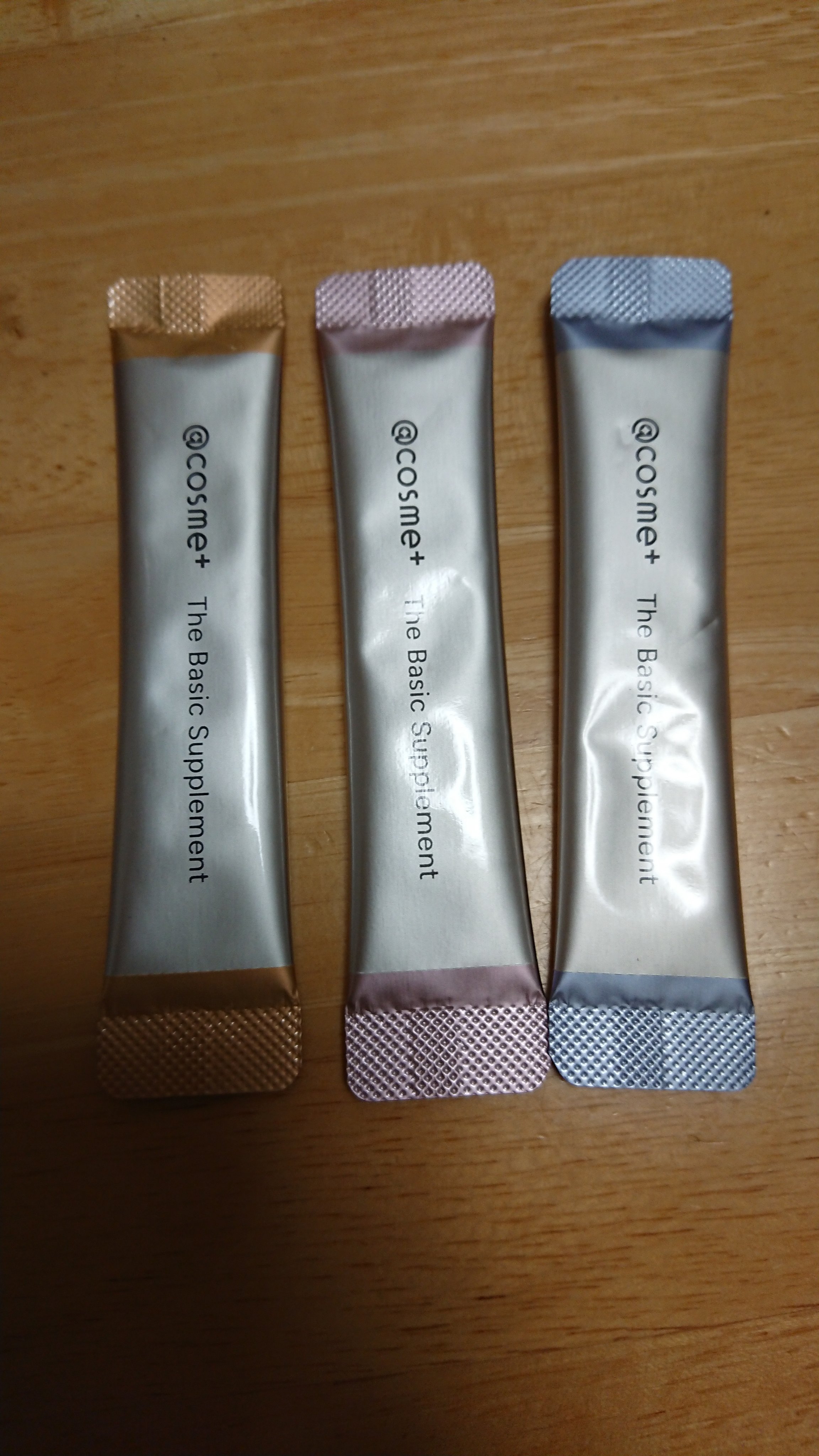 ◆アットコスメプラスザベーシックサプリメントアットコスメで購入した際に、3種類1包ずつのサンプルをいただきました✨✔ピュアセラミド味✔フレッシュピーチ味✔ビターオレンジ味そのままでも、水で飲んでもOK!私は、味をしっかり確かめたくてそのままい...
