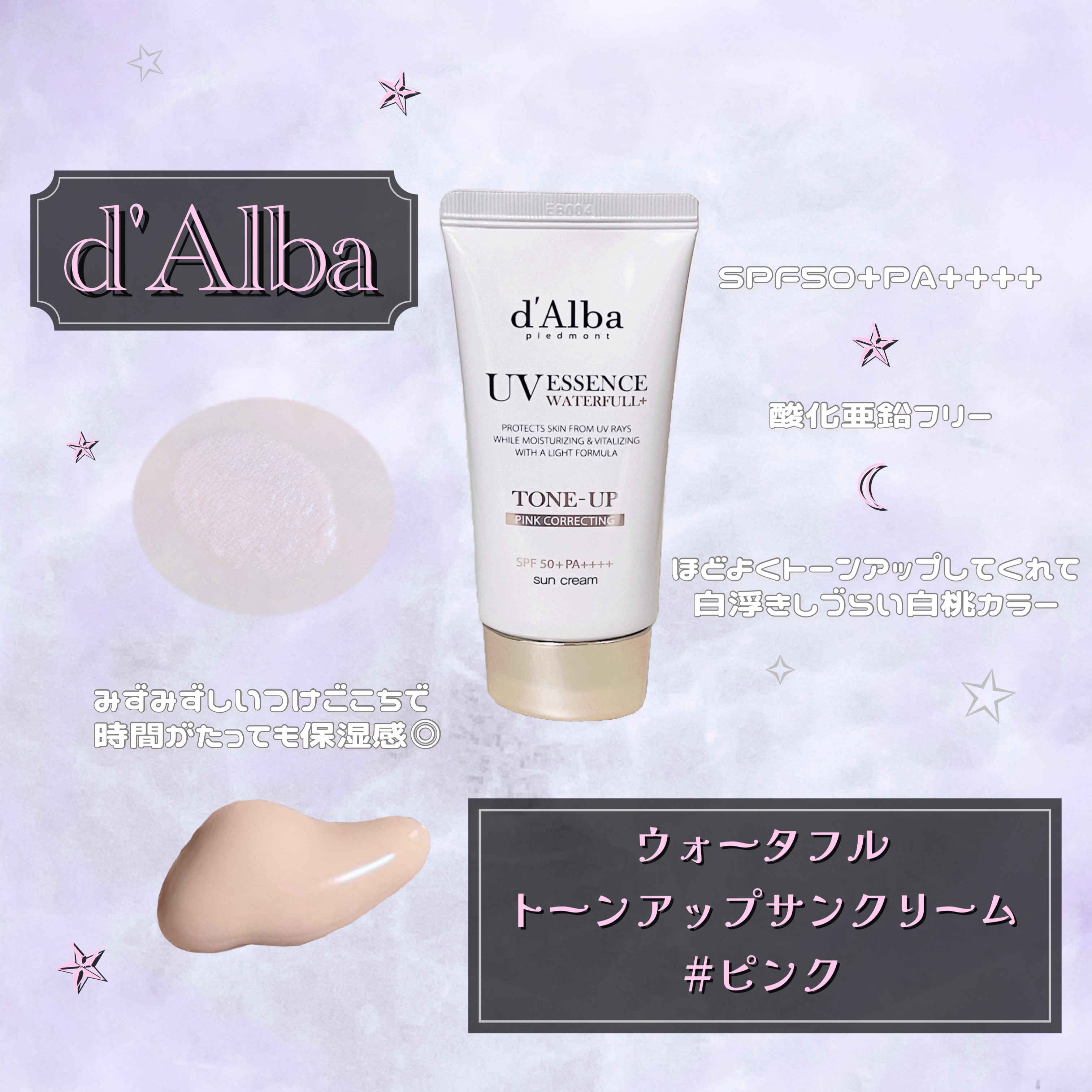 d’Alba(ダルバ)ウォータフルトーンアップサンクリームSPF50+PA++++ピーチピンク水分たっぷりでしっとりとしたテクスチャー白桃色カラーで自然な血色感のある水光感の肌に仕上がります肌に優しいのも◎#日差しブロックの心得...