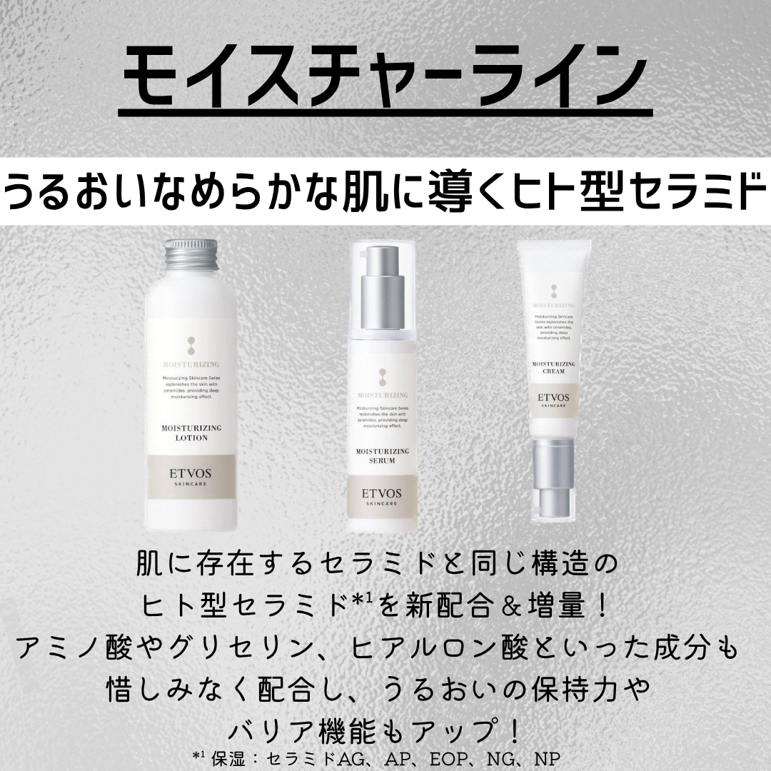 #PR#提供品#ETVOS#エトヴォス#敏感肌エトヴォスさまからいただきました。モイスチャーラインがパワーアップして登場してるよ🥳《リニューアルポイント》全品「ヒト型セラミド※1」配合&増量※2季節の変わり目や乾燥でお肌が敏感になってる時は特...