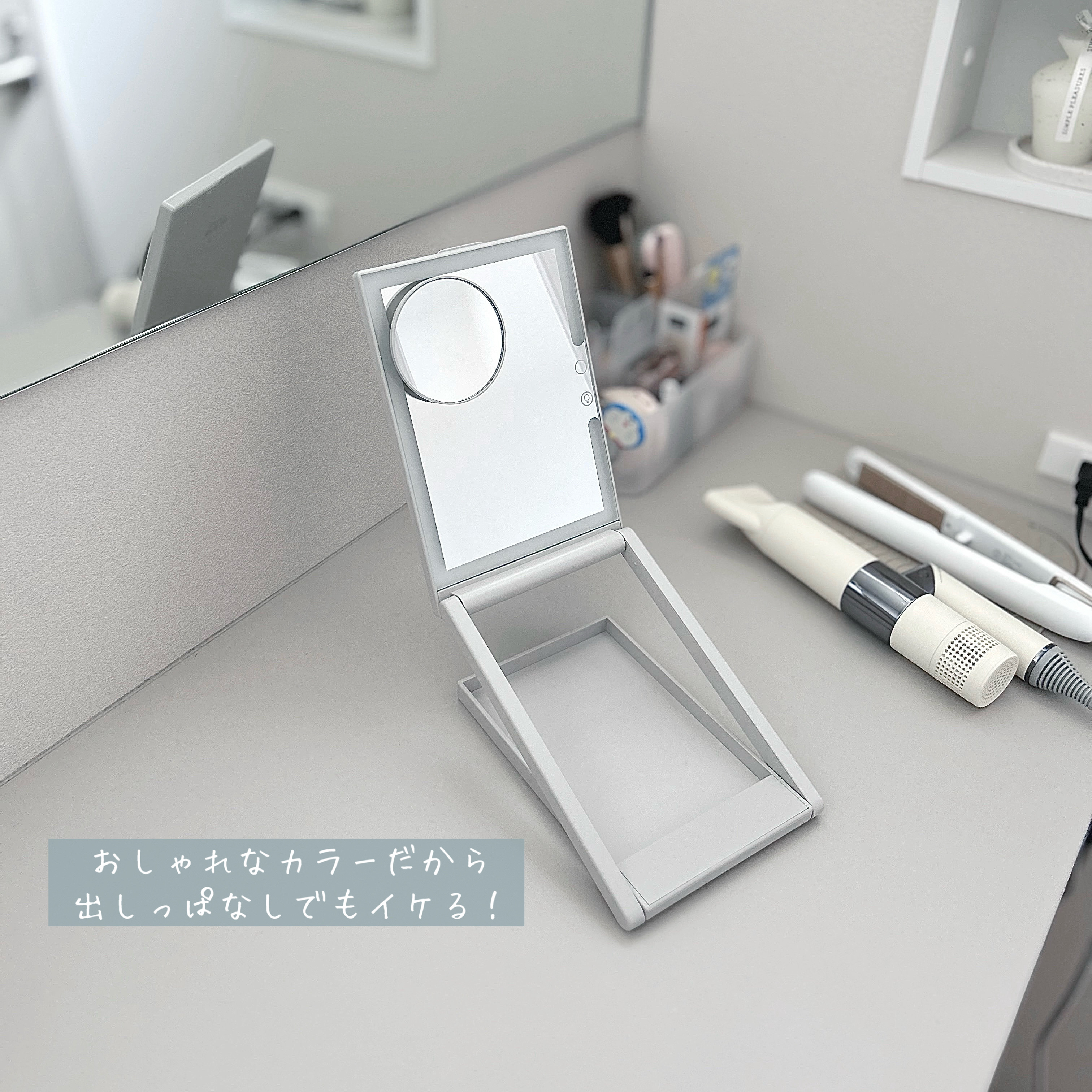 LEDが3色に光るのと、10倍の拡大鏡付きです。充電式なのも嬉しい。 今使ってるミラーもLED付いてたけど、電池もしくは有線だったから、あんまり使ってなかったんですよね。 新しいツールもテンション上がりますよね。