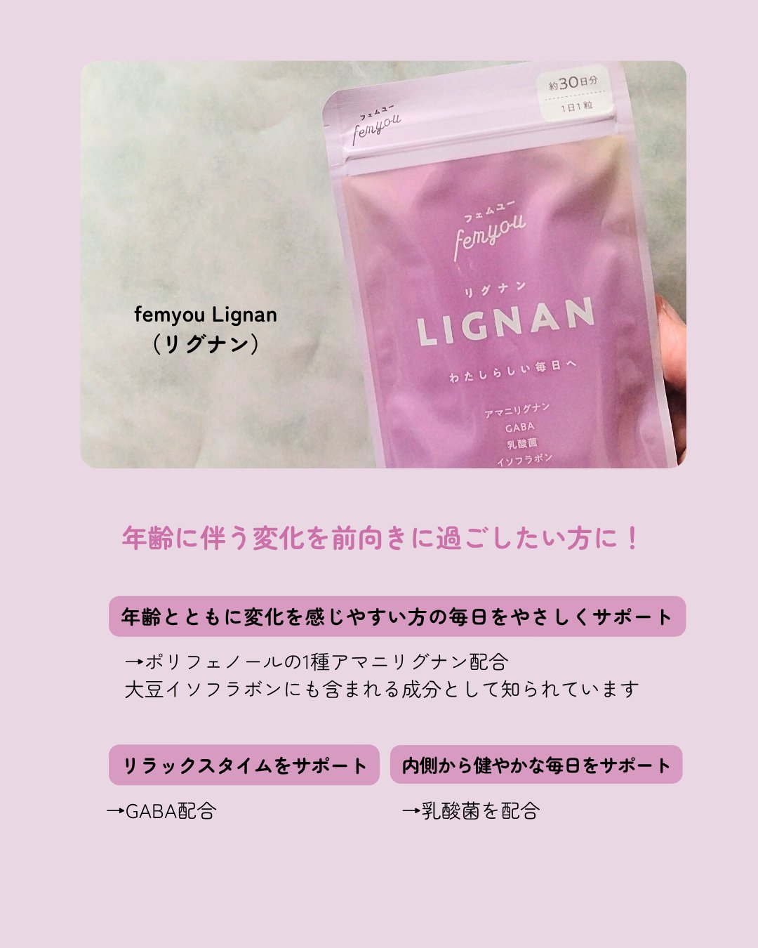 女性ならではの“ゆらぎ”に寄り添ってくれるフェムケアサプリ『femyou』から『Rafuma(ラフマ)』と『LIGNAN(リグナン)』を試してみたよ♡『Rafuma』は、女性のゆらぎを感じやすい時期にそっと寄り添うフェムケアサプリ。《なんとな...