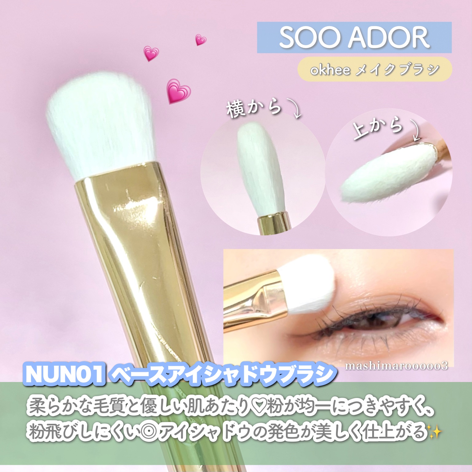 SOOADORokheeスペシャルメイクブラシ✧••✧メイクアップアーティスト「ソオク先生」プロデュース✨okheeNUN01ベースアイシャドウブラシ・柔らかな毛質→アイシャドウの発色を美しく仕上げる・粉が均一につきやすく、粉飛びしにくい✨o...