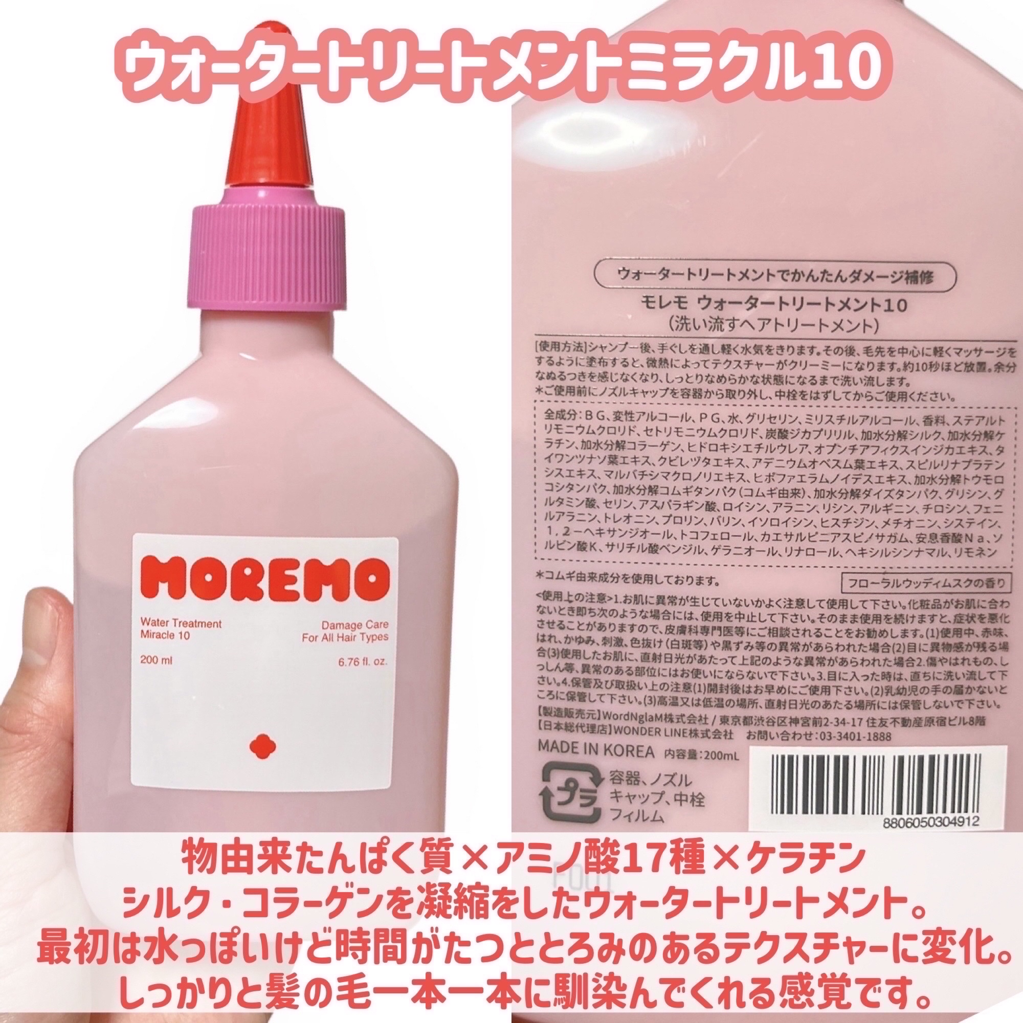 LemonSquareさんを通じて、MOREMOさんからいただきました🎁MOREMO・スーパーリペアシャンプー・ウォータートリートメントミラクル10・ディライトフルオイルMOREMOがリニューアルしてよりパワーアップ🩷パッケージがポップになっ...
