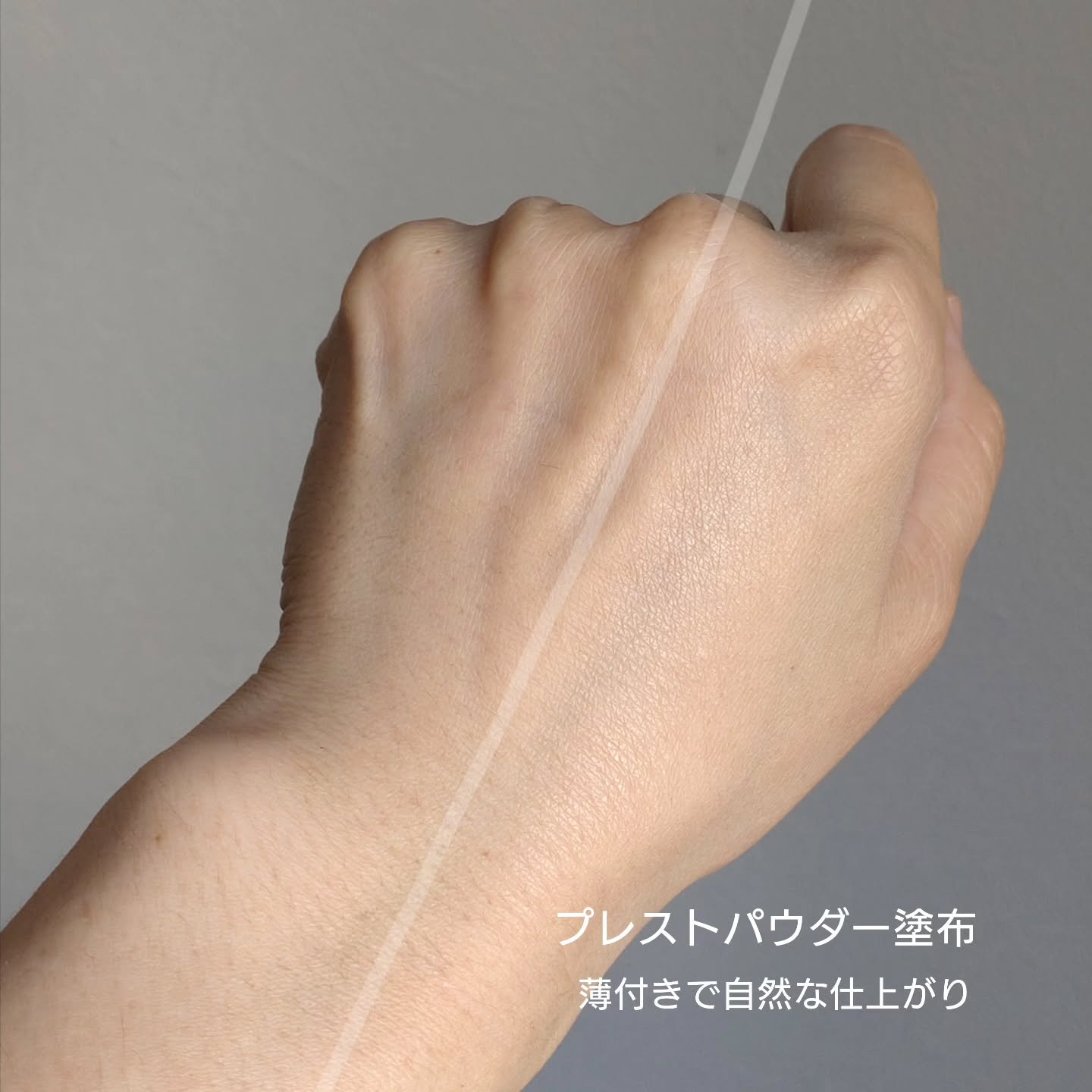 - 5つの色調で360度どこから見ても透明感のある肌に導くプレストパウダー。 ◎5つの色調で、肌色のムラを調整 5つの色調で肌色のムラを調整し、明るい印象を作ります。 ◎ダブルマイカ配合で透明感のあるメイクへ 合成フルオロ金マイカ:密着感UP、肌色を均一にして、明るいイメージに。 マイカ:きめ細かい、軽やかな粉質で密着感UP ◎汗や皮脂による化粧くずれを抑え12時間メイクキープ 中空球状シリカ:肌表面の皮脂を吸着し、テカリを抑える 余分な皮脂やべたつきを抑える:潤いを保ちながら、サラサラ肌を作ります ◎4種類の植物由来スキンケア成分で敏感肌も安心して使用できる スクワラン:肌の弾力を保つ ビタミンE:くすみを防ぐ マカデミアナッツオイル:やさしく潤いを与える アボカドバター:水分を閉じ込めて保湿する