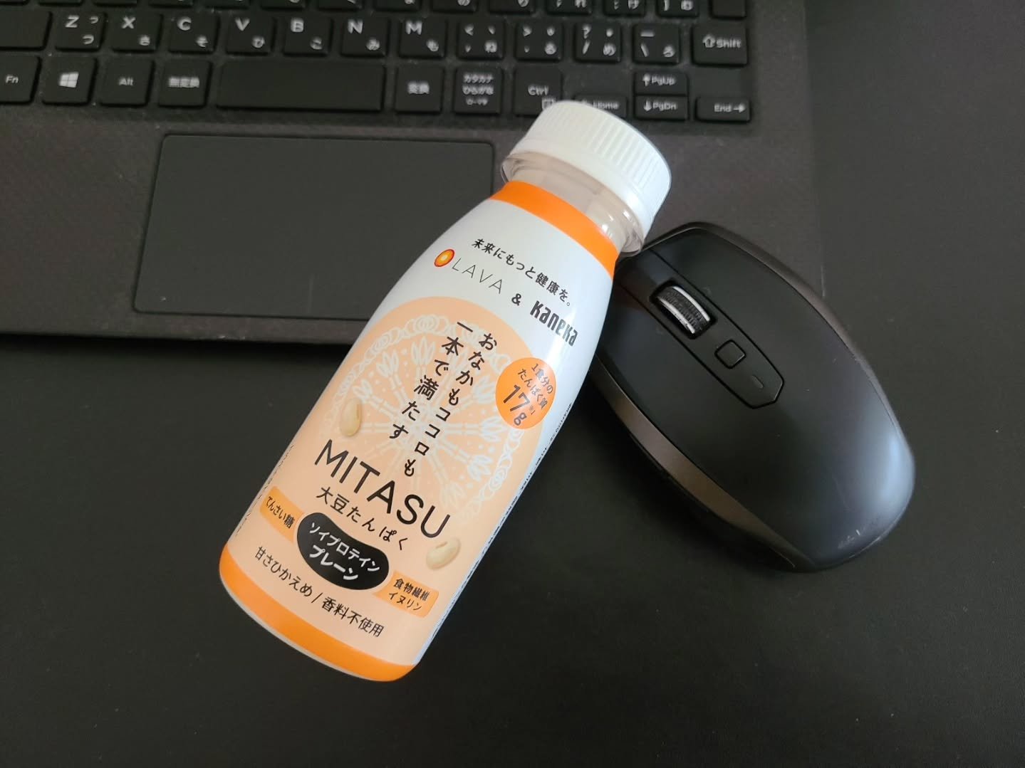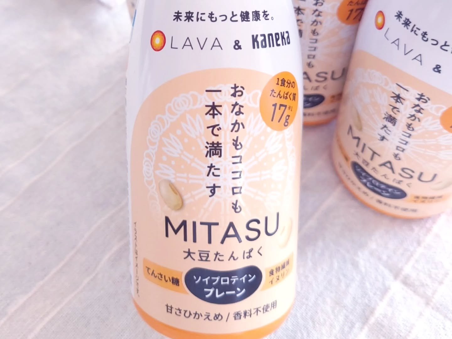 MITASUプレーン235ml357円おなかもココロも1本で満たすソイプロテインプレーン美味しいです。めちゃ美味しいです。甘さあり、とろんとした濃厚ドリンク。濃厚だからこそ美味しいしかし大豆大豆していないのでとっても飲みやすいです。ホットヨガ...