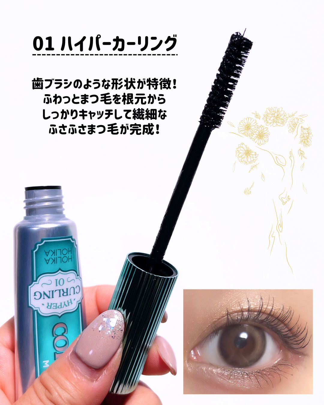 あなたはどんなまつ毛になりたい??👀✨なりたい仕上がりに合わせてマスカラを選べる😆🌸HOLIKAHOLIKAホリカホリカラッシュコレクティングマスカラ01ハイパーカーリング/02ディファインボリューム/03ロングエクステンション01のハイパー...