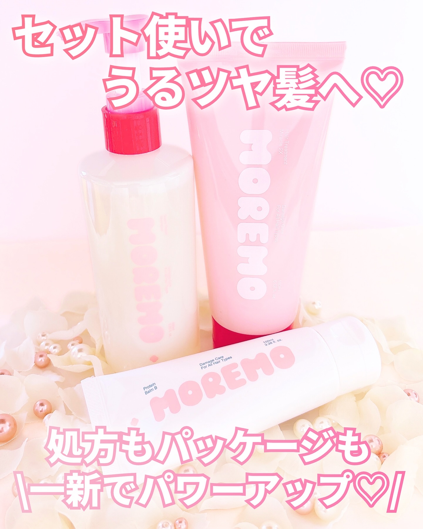 #PR\中身もパッケージもリニューアル/MOREMOスーパーリペアシャンプーヘアトリートメントミラクル2XプロテインバームB植物性タンパク質×アミノ酸が共通配合されているモレモのヘアケア。髪のダメージや広がり、パサつきが気になる方におすすめの...