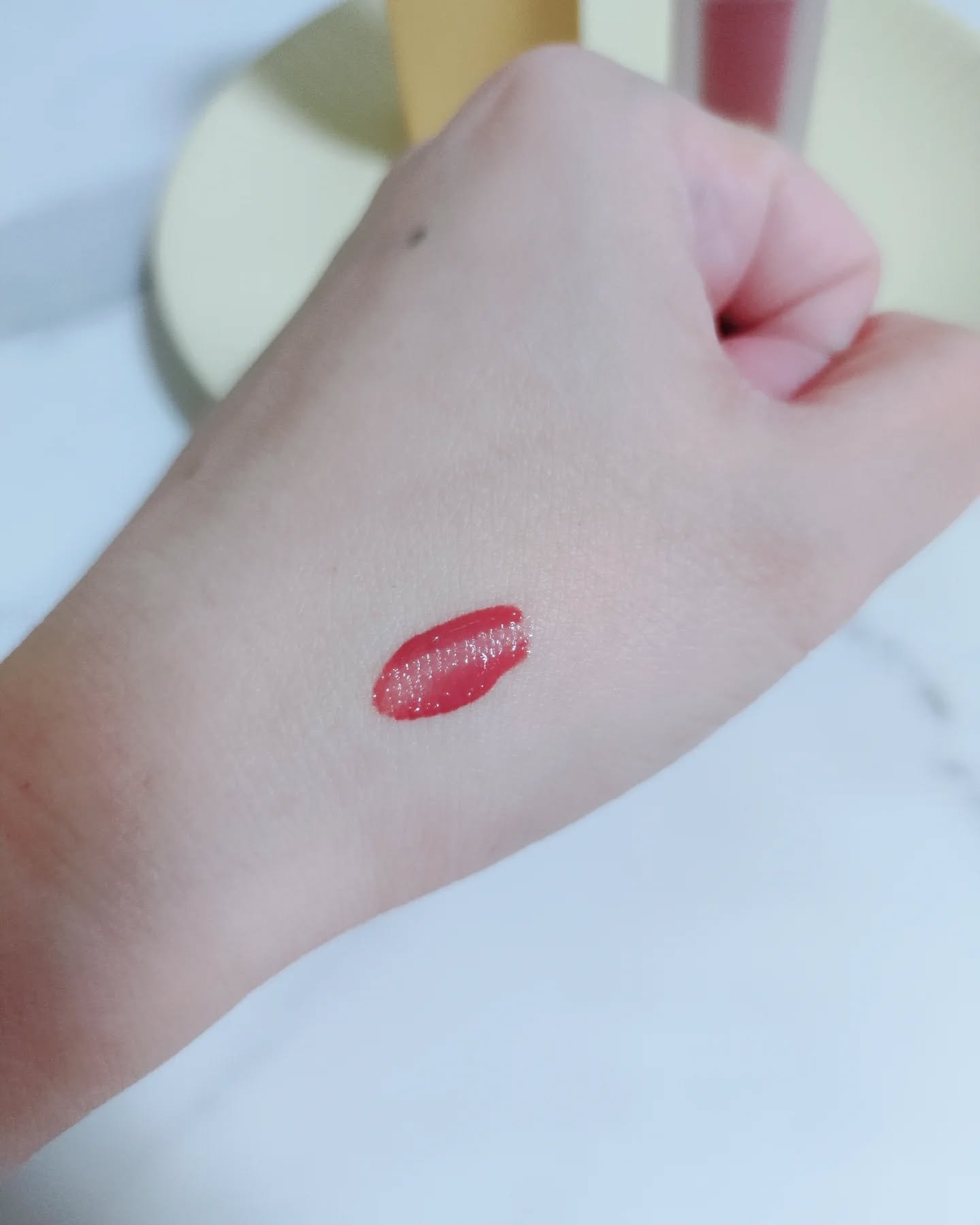 Lakaフルーティーグラムティント(124マロ)春が来る前のときめきを秘めたミューテッドピンク🩷肌馴染みの良いカラーで違和感なく自然な仕上がり🌿オフィスでも休みの日でも使いやすいと感じました◎なめらかでみずみずしいテクスチャー。スーッと唇に伸...