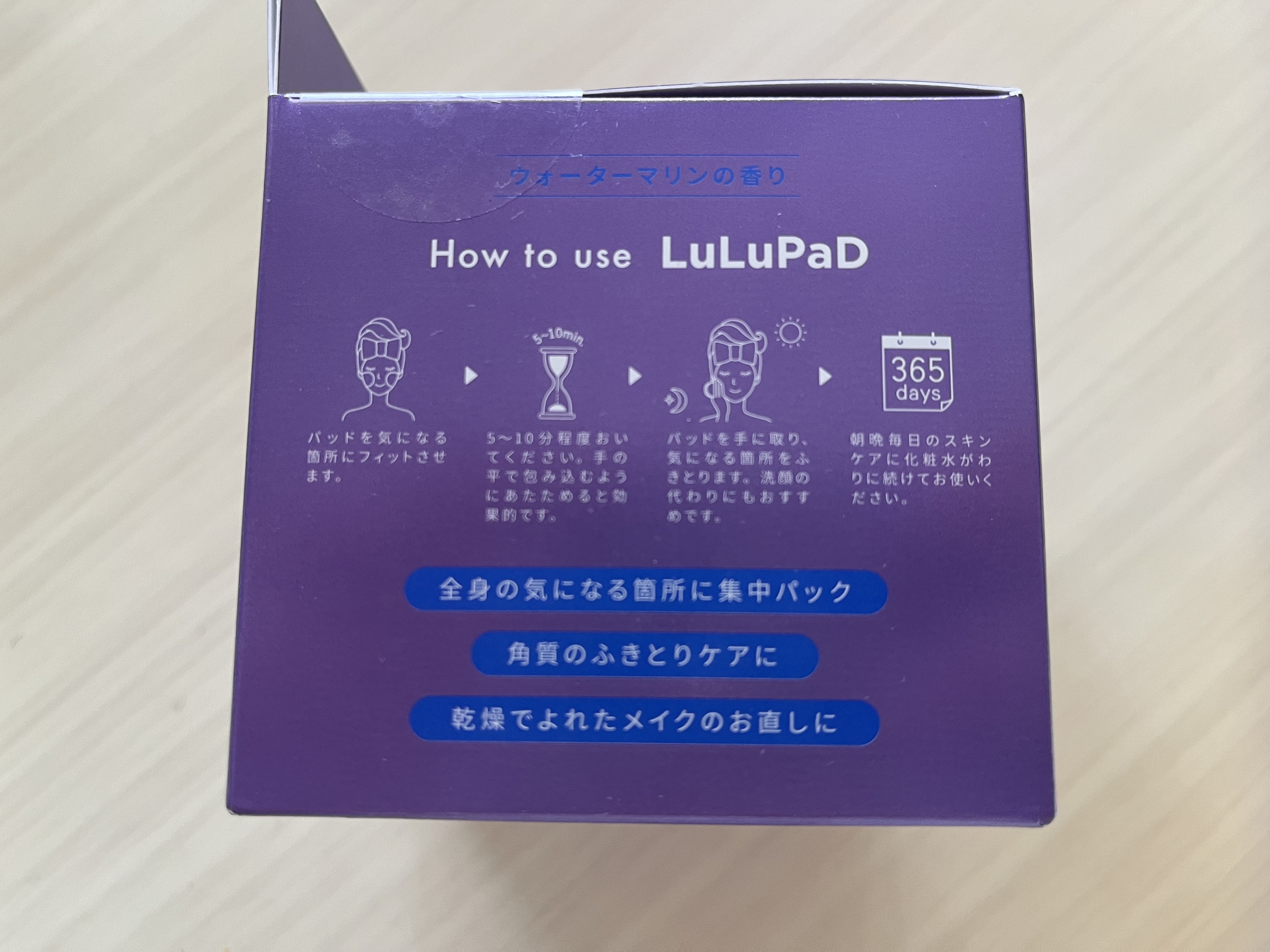 - <ルルルン トナーパッド ふきとりOFF> 水、ペンチレングリコール、グリセリン、カルボマー、水酸化K、フェノキシエタノール、メチルパラベン、香料、PG、PEG-60水添ヒマシ油、ナイアシンアミド、バクチオール、真珠母貝エキス、アスコフィルムノドスム/ヒバマタ/ヒジキ/トロロコンブ/レソニアニグレスセンス/ミツイシコンブ/リシリコンブ/ワカメエキス