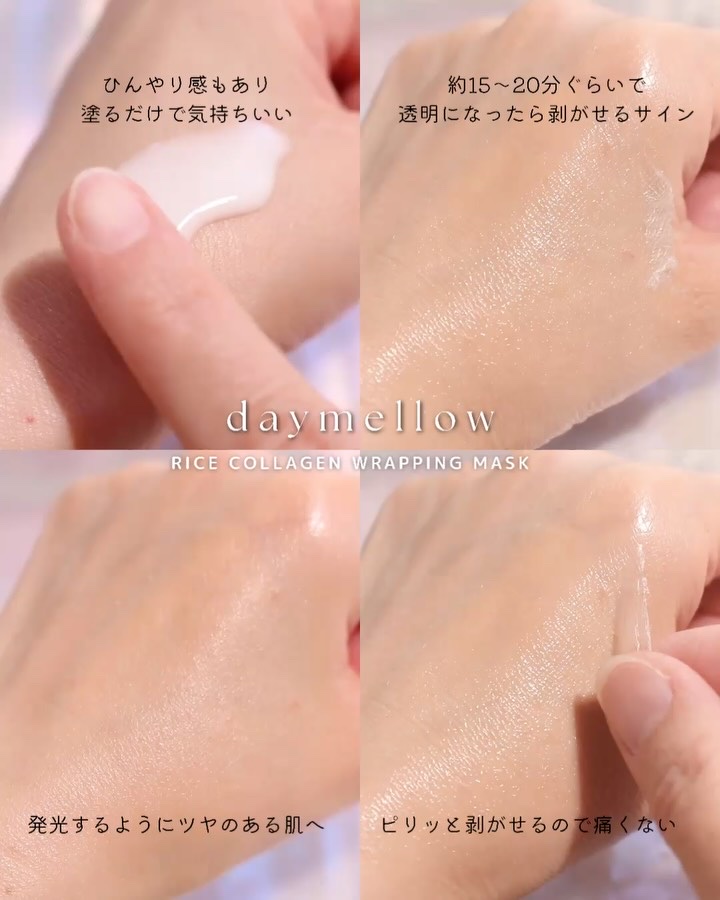✎ daymellow’デイメロウ様より、ライスコラーゲンラッピングマスクをいただきました!🌾 ⸻ \ぺりっとはがす集中ケアマスク/daymellow’(デイメロウ)ライスコラーゲンラッピングマスク ジェル状のマスクを顔に塗って、15〜20...