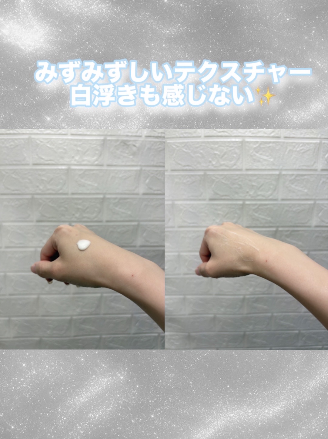 | ジェルなので伸びが良く、白くならないです。 馴染むとサラっとしてくれます♪ | 詳細を見る | ||