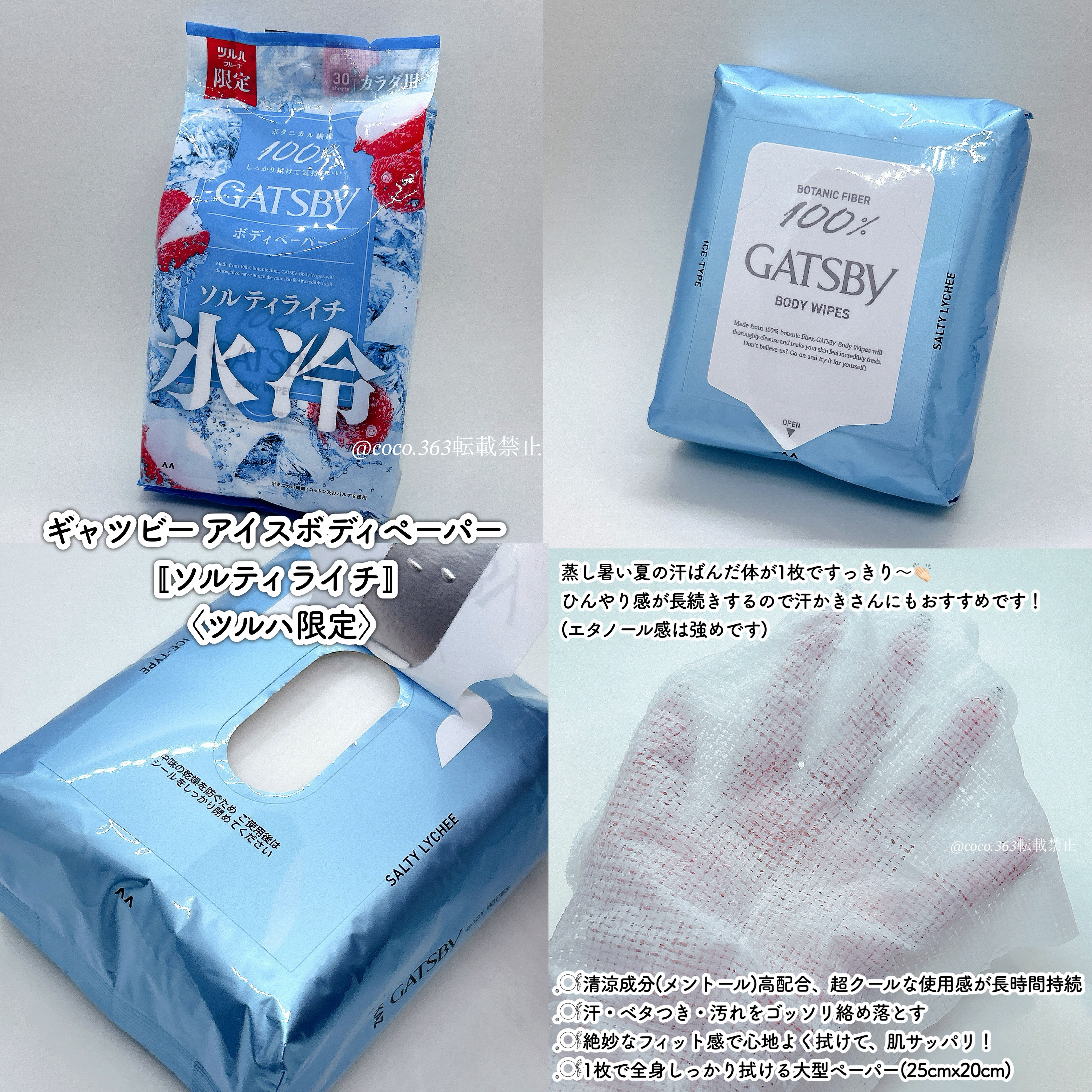 GATSBYの人気アイテム氷冷🧊マツモトキヨシ・ココカラファイン限定!◻️GATSBYアイスデオドラントボディペーパーフローズンサイダーの香りレモンスカッシュの香り各¥605(税込)マツキヨ・ココカラファイン限定の氷冷を発見!フローズンサイダ...