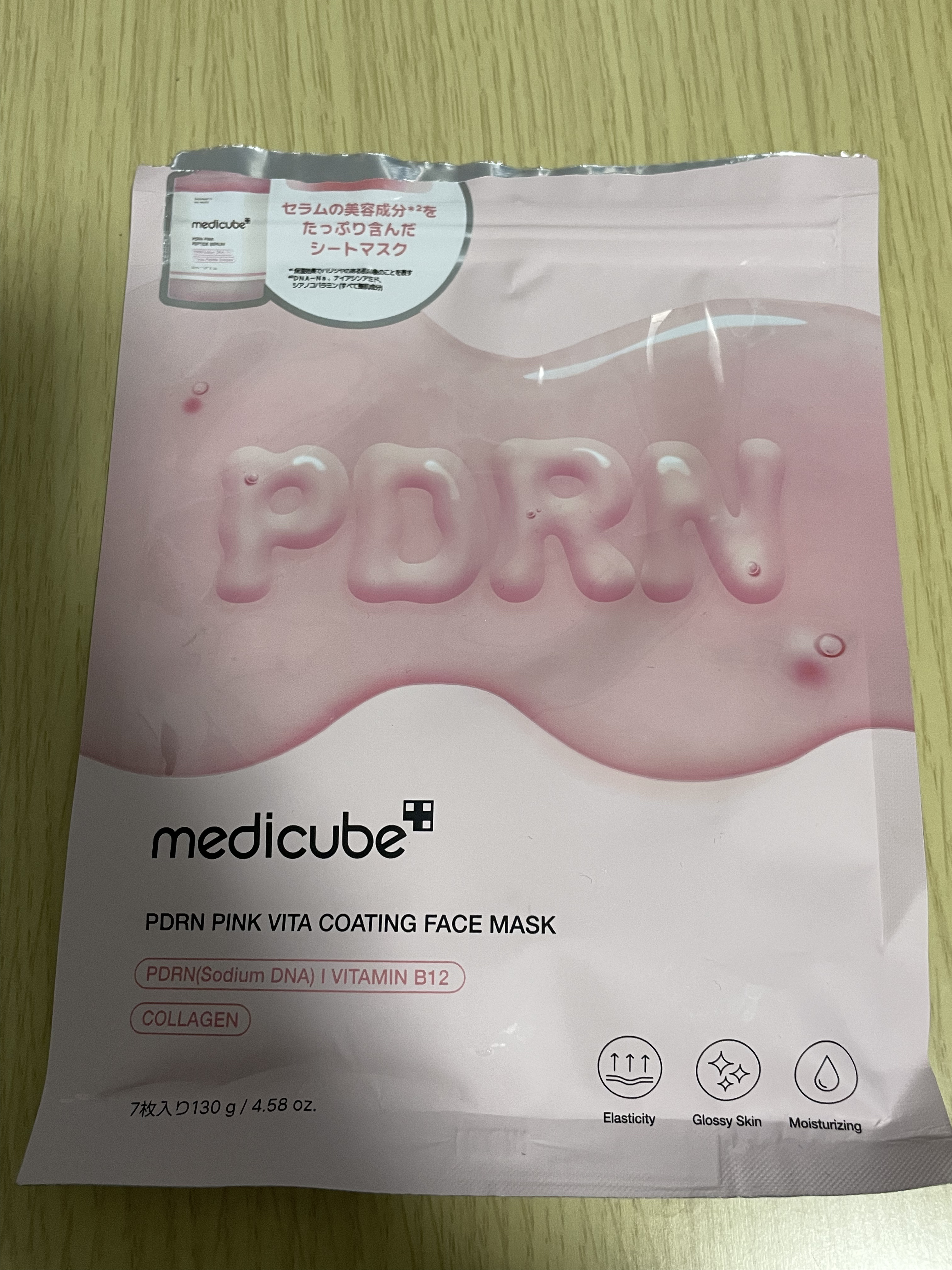 メディキューブPDRNピンクビタコーティングマスクLIPSショッピングで1枚入りの個包装、税込275円でした。シートマスクの生地がピンクで、美容液もうっすらピンク。とても薄くて柔らかいシート。台紙がついてます。優しく持たないと破れそうで...