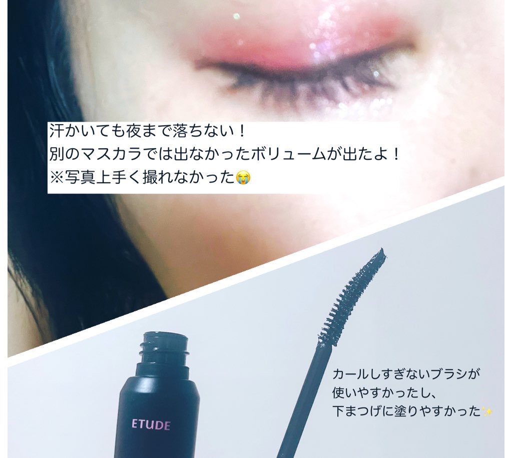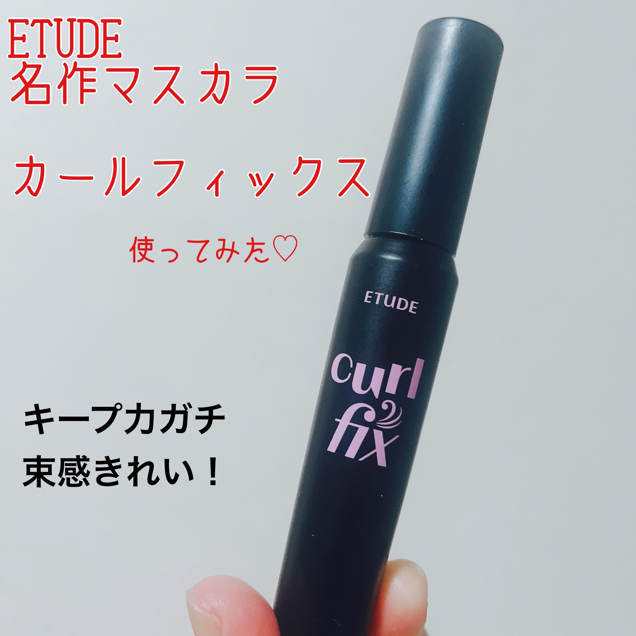 ETUDEの超優秀マスカラから新作登場♡ 黒いパケが印象的なカールフィックスマスカラ ボリュームブラック💎 カールキープ力が抜群! 朝メイクして夜お風呂入る前に鏡を見てもまつ毛はカールしたまま!感動🥺! 1本で、カールキープ・ボリュームアップ・トップコートの3役を叶える ベース&トップコート🌈