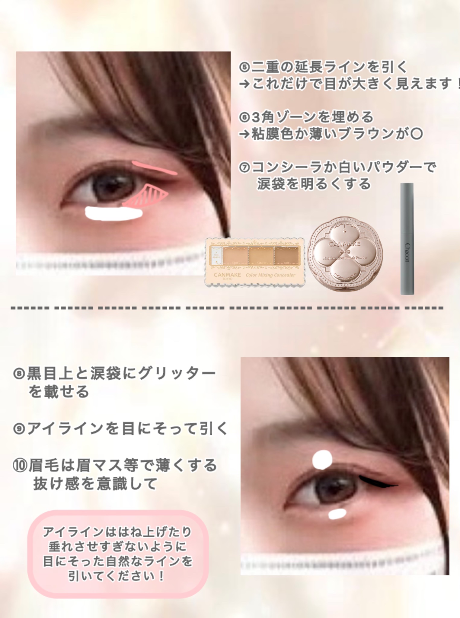 メイクが好きな高校生です!初めての投稿なので見にくいかもしれません🙇💦涙袋簡単に盛りたいけどどうしたらいいか分からない…そんな方にぜひ真似してみてほしいです!私自身学生なのでプチプラコスメしか使わないので同じ学生さんにもおすすめです👍少しでも...