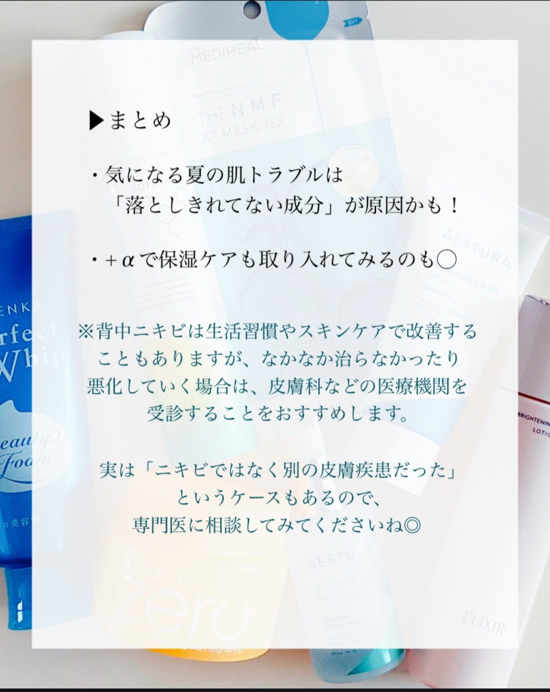 ✨今日からできる!背中ニキビ対策5か条🛀✨①順番大事!髪→体の順で洗う! →最後に背中にシャワーをしっかり当てて「すすぎ残しナシ!」🚿②ボディソープは低刺激タイプに! →石けん系orサリチル酸入りなど、ニキビ肌対応タイプが◎ 【おすすめ】 ・...