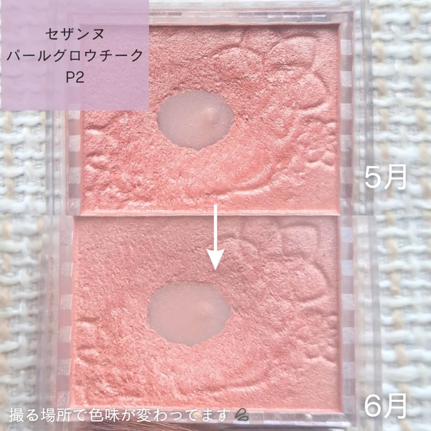 \セザンヌ廃盤予定チーク😭/・CEZANNEパールグロウチークP2ベージュコーラル今年の秋に廃盤予定のチーク...PC判明してから買ったチークで大分お世話になったアイテムの1つで安くて色がかわいいだけでなくラメ入りでラメが毛穴をぼかしてくれる...