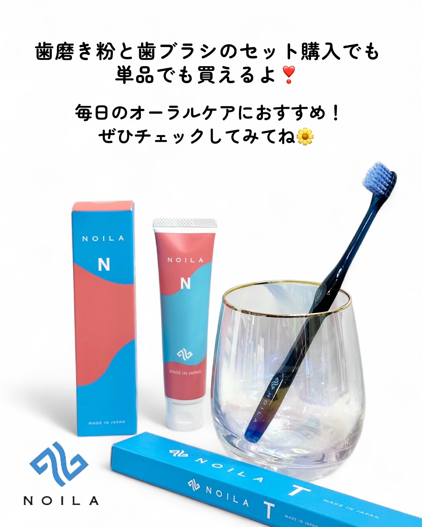 - NOILA-N 銀イオン配合で、嫌なニオイをケアしネバつき・ぬめりを防ぐ。 低研磨、高ステイン除去。 歯科技工所40年の銀配合ノウハウを活かし開発。国内製造。 長引かないやわらかなグレープフルーツのフレーバー NOILA-T スパイラル毛の極細毛が隙間に入り込み、フラット毛が歯の表面の汚れをしっかり落とします。 厚さ4.5mmの薄型ヘッドが口内のせまい隙間に入り込み、人間工学に基づいたハンドルで快適。