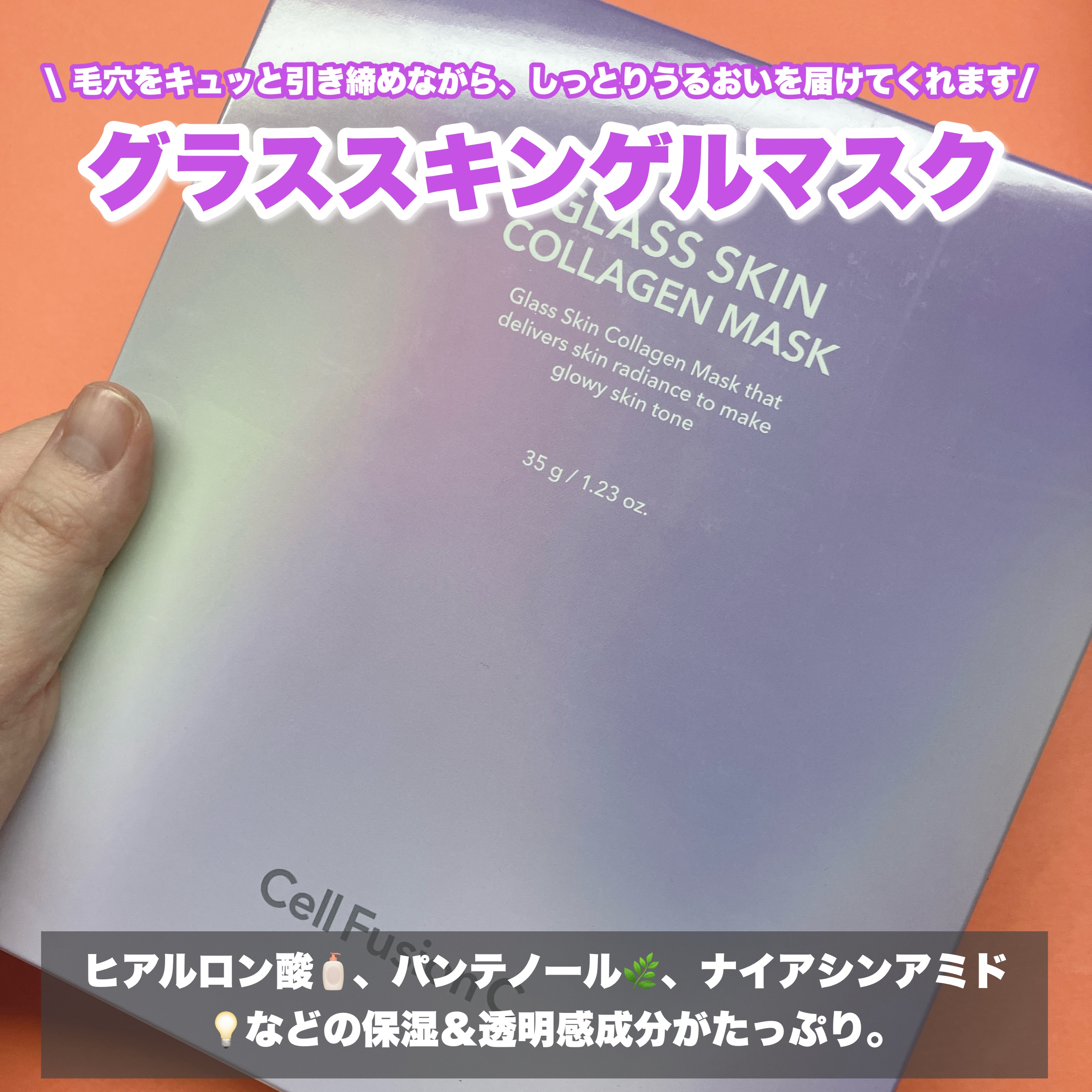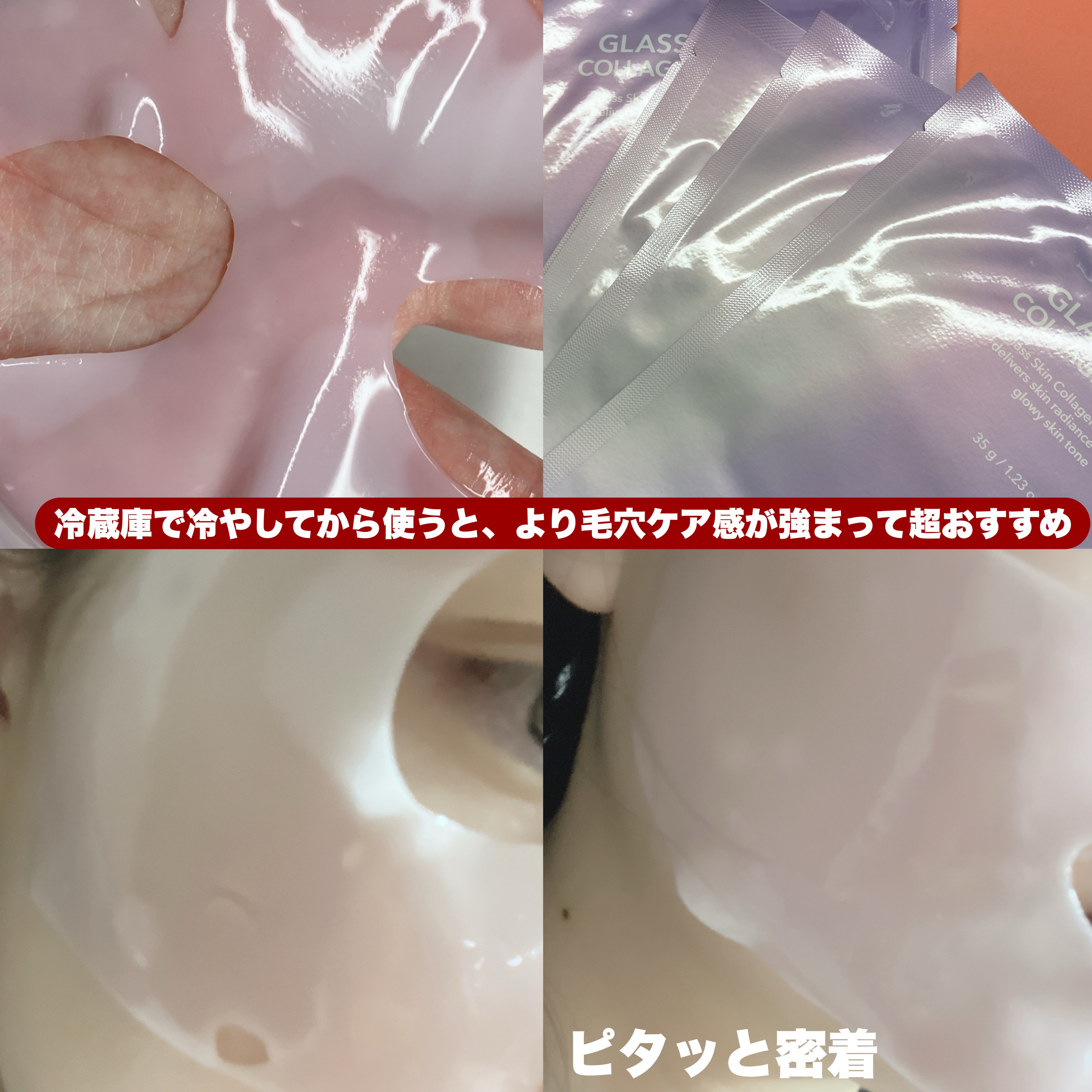 3種類のコラーゲン*アンプル1本をそのまま薄く固めたガラス玉ハイドロゲルマスク𓂃🔮🫧 水分をたっぷり含んだぷるんっぷるんのゲルシート!有効成分が肌に浸透するとだんだん透明に変化します🫥 しっとりふっくらすべすべの肌感がたまりません🫶