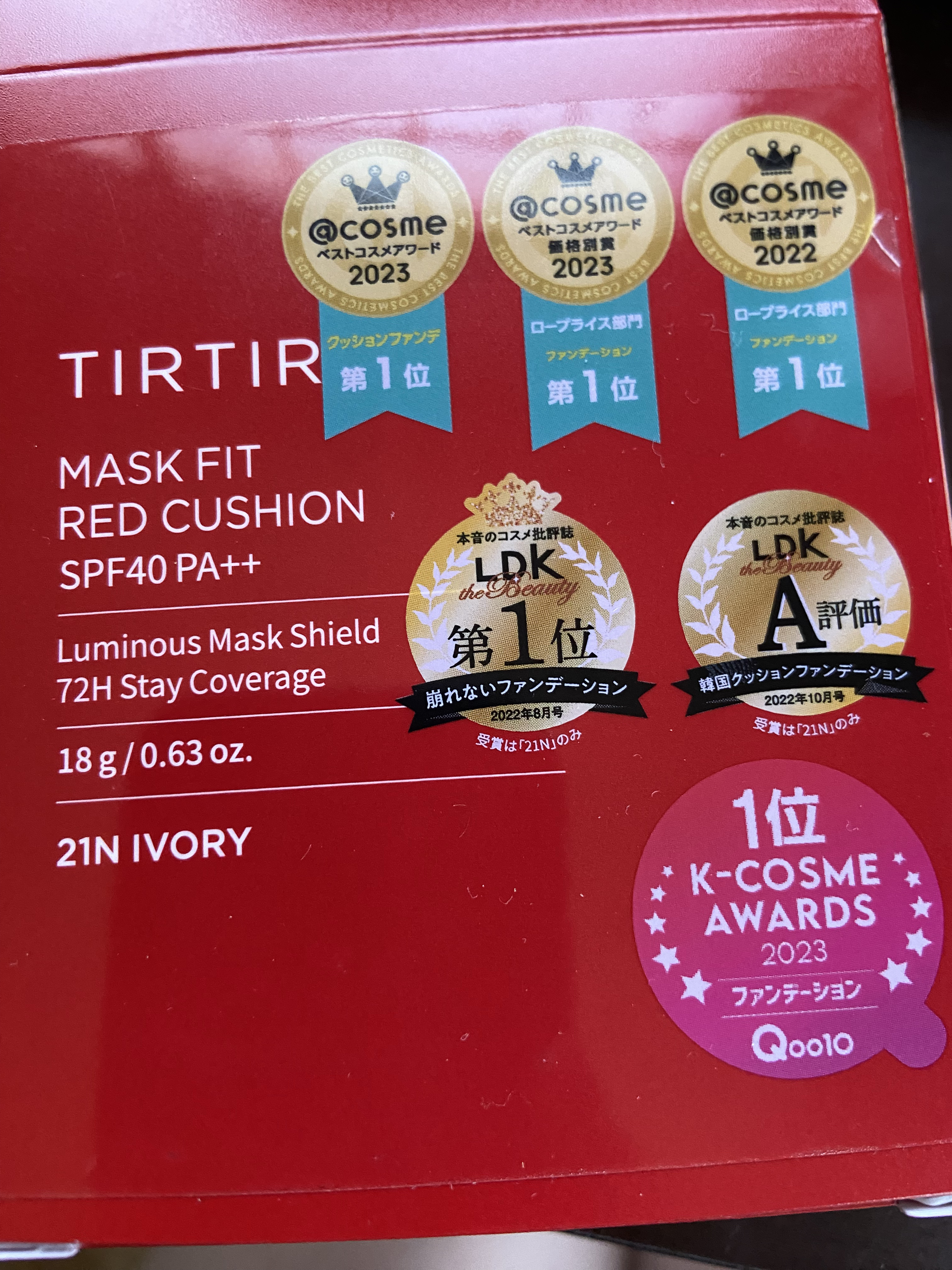 - LIPSベストコスメ2023 クッションファンデ部門3位LIPSベストコスメ2023 上半期こだわりアワード ファンデーション部門カバー力賞1位LIPSベストコスメ2023 上半期こだわりアワード ファンデーション部門崩れにくい賞2位LIPSベストコスメ2022 下半期こだわりアワード ファンデーション部門カバー力賞1位LIPSベストコスメ2022 下半期こだわりアワード ファンデーション部門崩れにくい賞2位LIPSベストコスメ2022 LIPSベストコスメ2022上半期 カテゴリ クッションファンデ 第2位