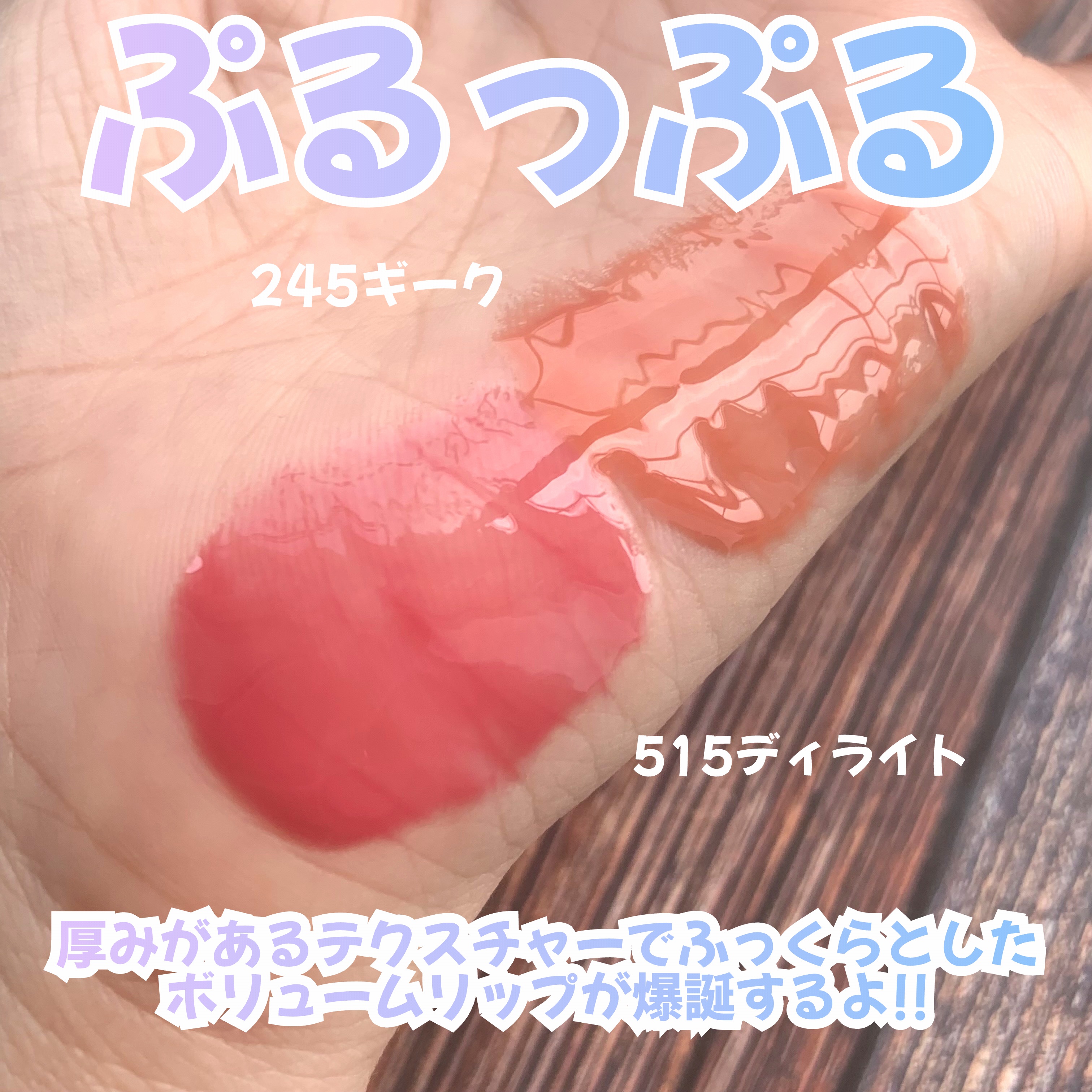 | リップティントランキング第3位 | 重ねて塗っても、ちゅるんと透け感が残って明るめカラーがとっても映える…💕色残りも◎ | 詳細を見る | ||