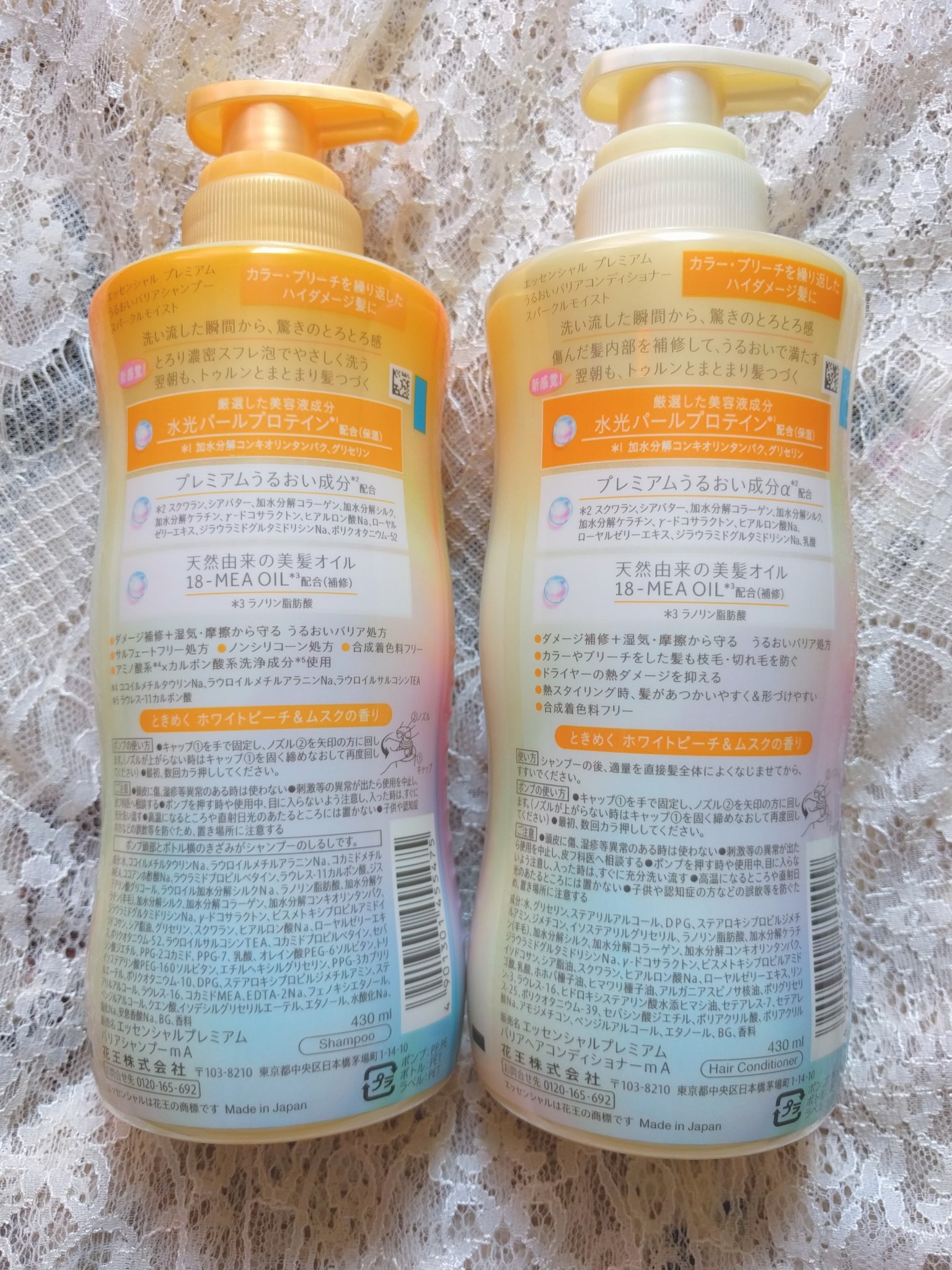 エッセンシャルからハイダメージ向けの商品が新登場!✨️エッセンシャルプレミアムバリアシャンプー/コンディショナースパークルモイスト新感覚のトゥルンとまとまりつづくとろとろ感🤍カラーやブリーチで傷んだ髪をうるおいで満たしてくれるそう👶🏻ホワイト...