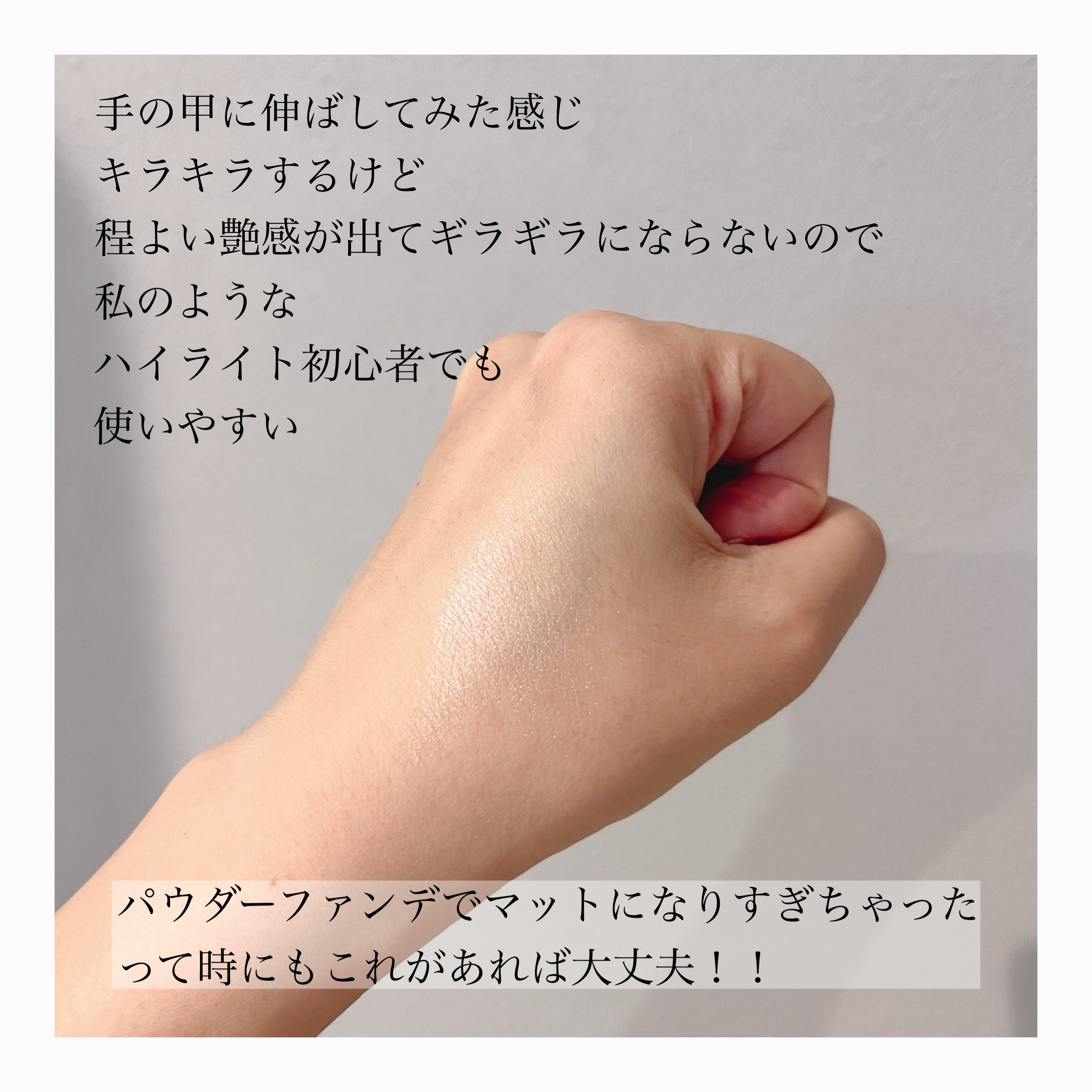 - まるで塗るレフ板。濡れツヤ感ハイライト。 高輝度なパールがぎっしり。まるで肌の内側から発光したようなツヤ感を演出。 くすみやクマを光で飛ばして明るさを出し、お顔を立体的に見せます。 美容保湿成分(ヒアルロン酸Na・ラベンダー花エキス・カミツレ花エキス・ローズマリー葉エキス)配合。
