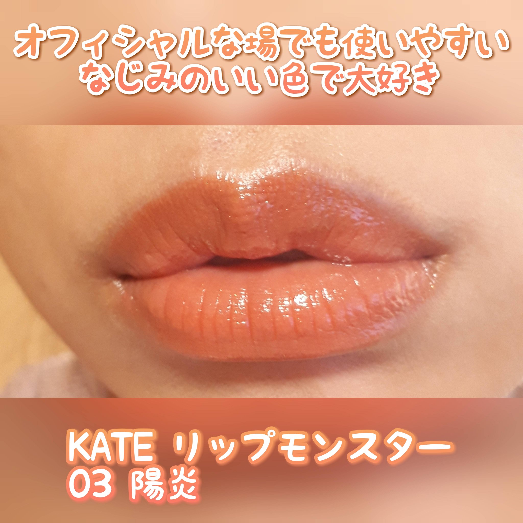 ケイトのリップといったらリプモンだけど、550円でかえるこっちの色つきリップも好きでめっちゃ使ってます! この手軽さや価格はありがたい… 発色もやわらかめだけど唇にしっかり血色感を宿してくれるから大好き。 リップは塗り直すこと前提で生きてる私にとって、この手軽さや価格はありがたい…