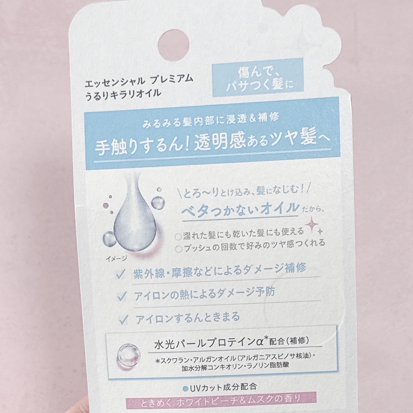 \とぅるとぅる髪に仕上がる🫧/🏷エッセンシャルプレミアムうるりキラリオイル✨エッセンシャルから新作ヘアオイルが登場しました♡とろ〜りと髪にとけ込んで馴染んで、髪内部に浸透&補修!とぅるんとまとまりが出て、透明感のあるツヤ髪に仕上がるヘ...