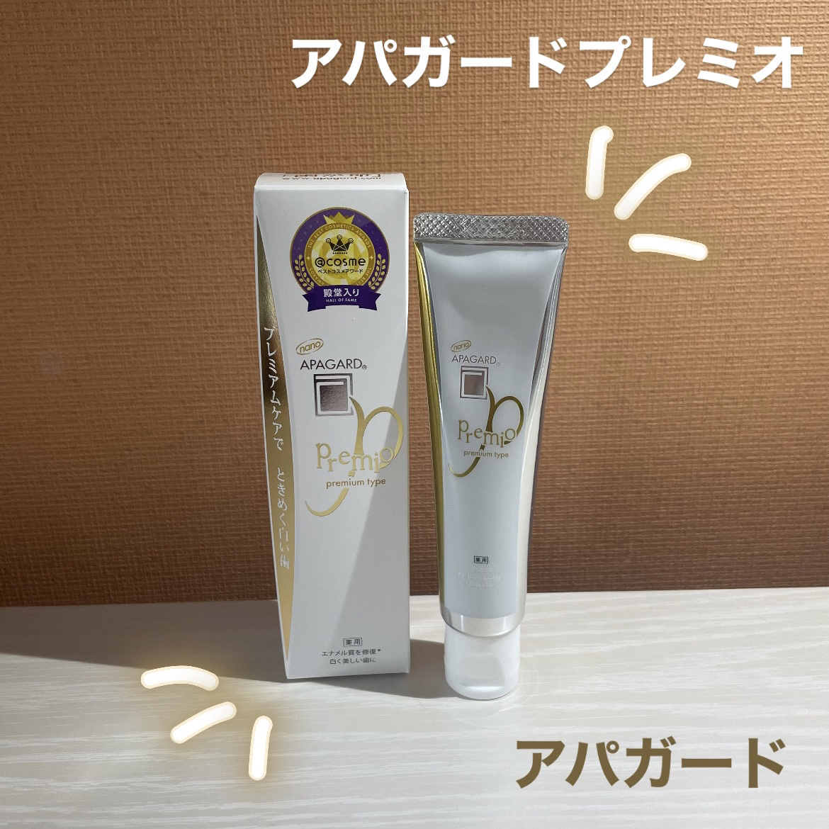 - 【医薬部外品】 独自成分「薬用ハイドロキシアパタイト」がエナメル質を整えてむし歯を予防。アパガードはエナメル質の健康を保つことで自然な白い歯に導く美白歯みがきブランド。アパガードプレミオは「薬用ハイドロキシアパタイト」を高配合(スタンダードタイプ比)。プレミアムケアでときめく白い歯に。 <ライトミント> ●サンギ独自の薬用成分ナノ粒子「薬用ハイドロキシアパタイト」を高配合したプレミアムタイプ。※Mプラス、スモーキン比 ●歯の再石灰化率、白色度もアップ。 ●歯垢を吸着除去し、歯のエナメル質の目に見えない傷を埋め、ミネラル欠損部(初期むし歯)を再石灰化するナノ<mHAP>の3つの働きで、むし歯を予防。 ●パール成分(加水分解コンキオリン液)配合。 <エクストラミント> ●強めのミントがお好みの方におススメ!ミント強めの「エクストラミント」フレーバー。 ●サンギ独自の薬用成分ナノ粒子「薬用ハイドロキシアパタイト」を高配合したプレミアムタイプ。※Mプラス、スモーキン比 ●歯垢を吸着除去、エナメル質表面の目に見えない傷を埋めてなめらかに、エナメル質から溶け出したミネラルを補給(再石灰化)する、という薬用ハイドロキシアパタイトの3つの作用でむし歯を予防。 ●パール成分(加水分解コンキオリン液)を追加したブライトニング処方