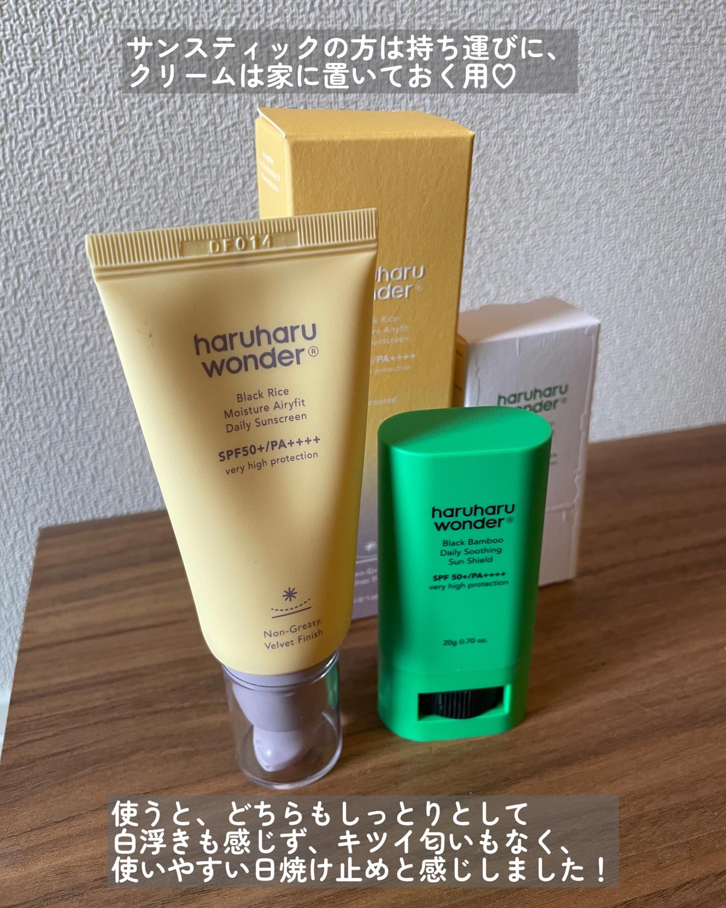 紫外線にはご注意を😎〖HaruharuWonder〗◾️ブラックライスモイスチャーエアリーフィットデイリーサンスクリーン高SPF値でUVケアも優秀なサンスクリーン⛱️🔅乳液のような軽いテクスチャーで肌なじみも良く肌もしっとり💧保湿ケアもできる...