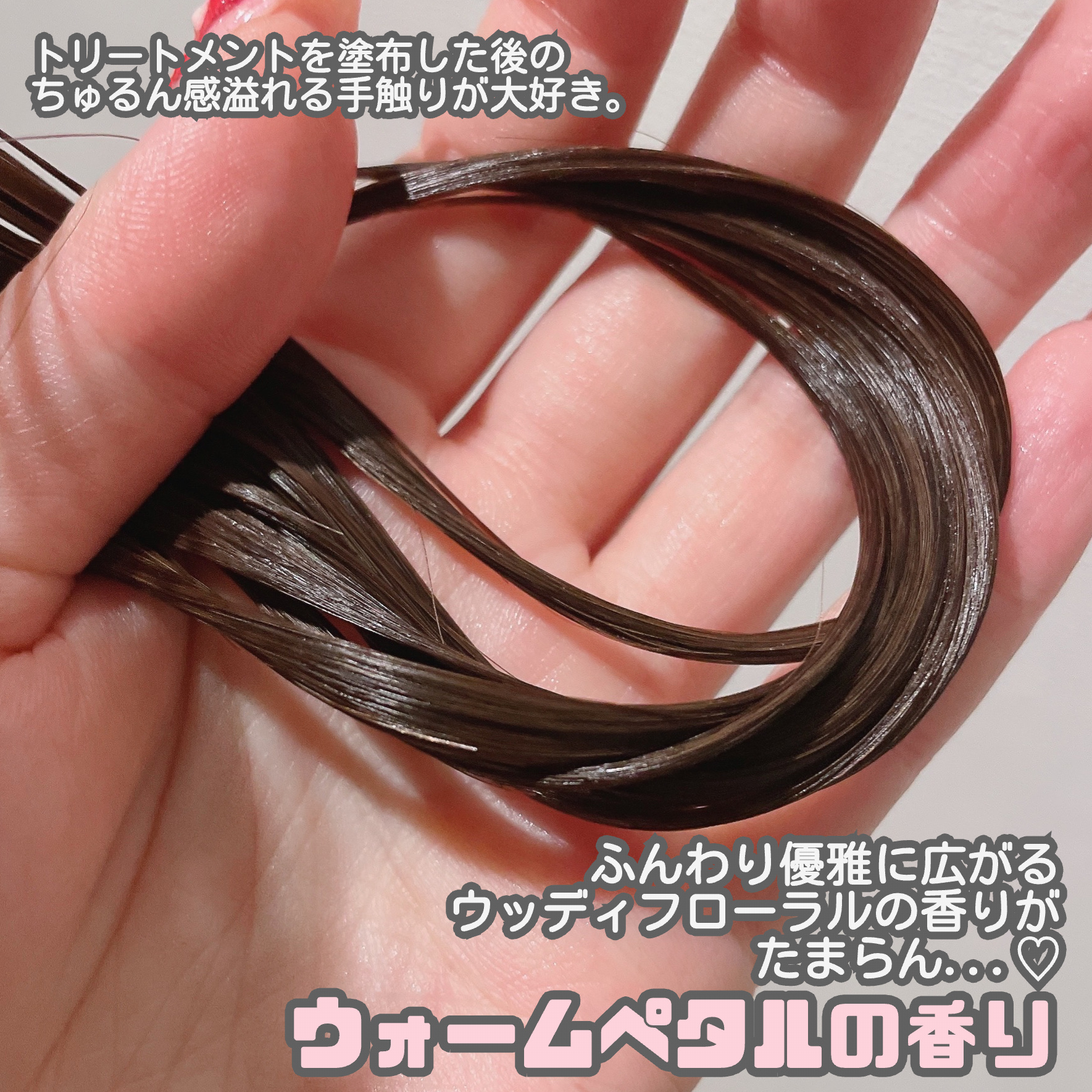 韓国オリーブヤングヘアケア部門 2022年、2023年、2024年の3年連続受賞✨ さらにLDKヘアマスク部門1位、LIPSトリートメント部門1位を受賞した日韓で大人気のヘアトリートメント🏅 こちらのウォームペタルの香りは長時間ほのかに香るウッディフローラルムスクの香り🌿 ウッディもフローラルもムスクも大好物でこの香りかなりどタイプです😮💨 ドライ後に何度もさわりたくなるほどの、とぅるんとしたまとまり感がたまんない✨ 翌日も滑らかで指通りのいいサラとぅるヘアをぜひみんなに試してほしいです♡