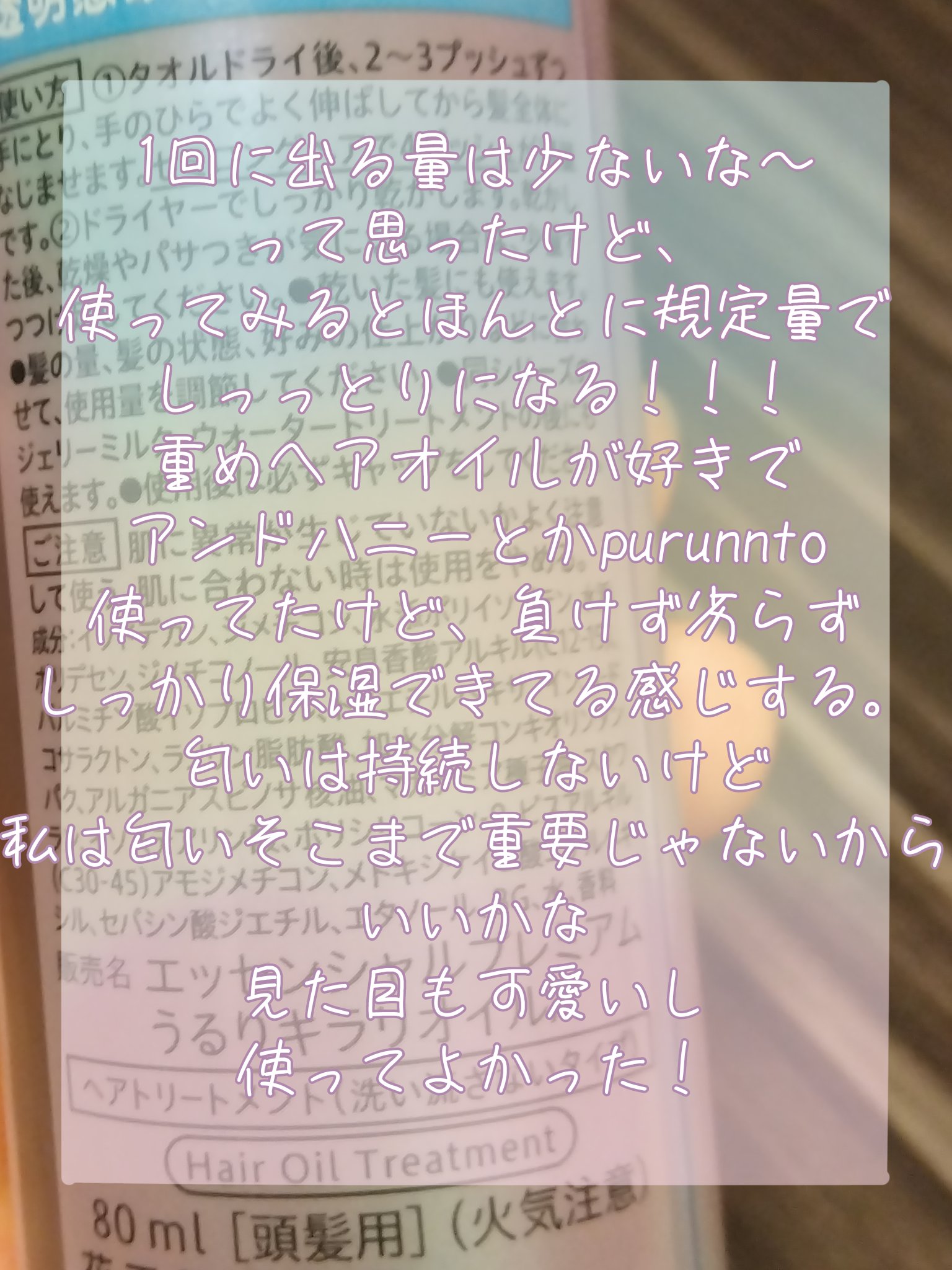 | ヘアケア・スタイリングランキング第25位 | とろみはあるけどオイル特有のぬるっと感は 控えめなテクスチャー✨ | 詳細を見る | |