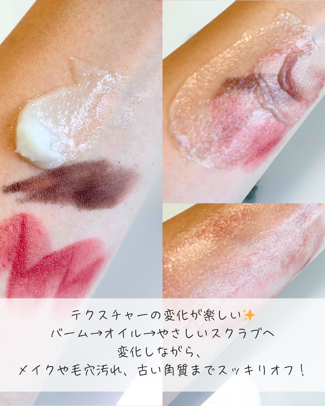 | バームを肌に乗せて撫でるとすぐに オイルみたいにみずみずしく変化✨ | 詳細を見る | ||