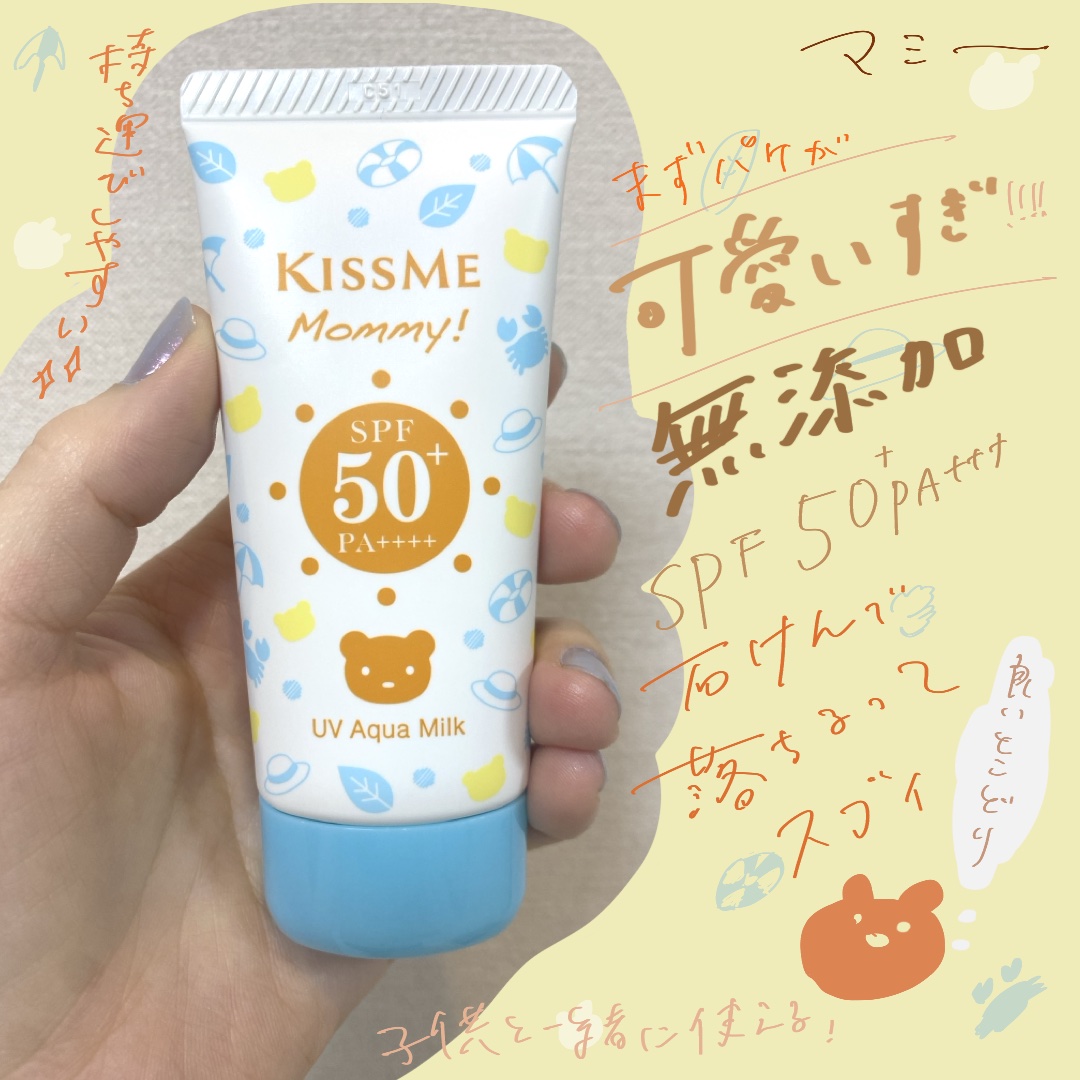 KISSMEマミーUVアクアミルク『子供の敏感なお肌を紫外線から守る』・最強!(マミーシリーズ内において)紫外線カット・長時間の外遊び・水遊びに・キシキシせず、白くならない!・食品成分でつくったミルクタイプの日やけ止め・親子でやさしく使える・...