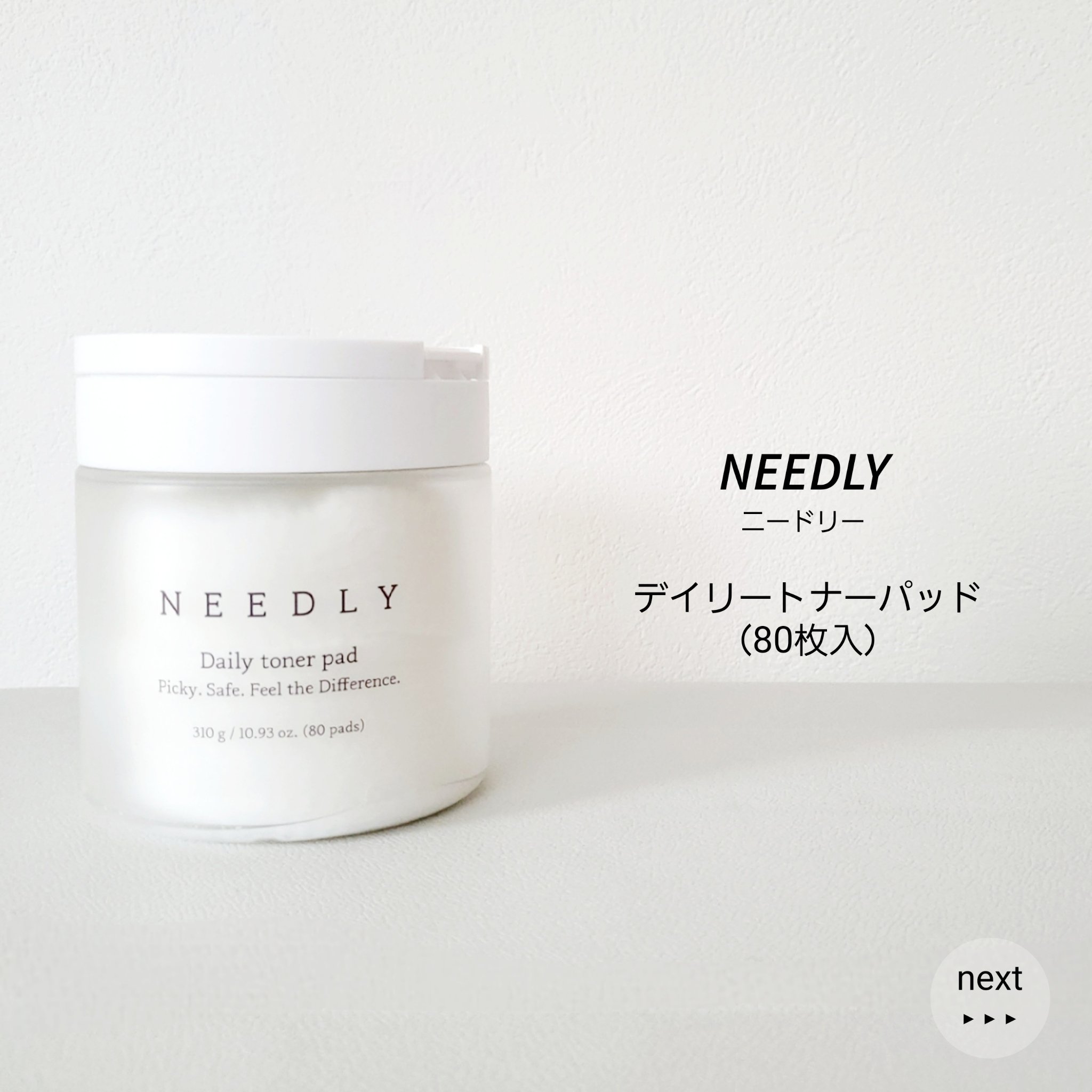 NEEDLYデイリートナーパッド使ってみました💕KISSOFLIFE・NATTYさんおすすめのトナーパッドです大容量の80枚入り★BHAやPHAなどの角質ケア成分を配合。古い角質やブラックヘッド、余分な皮脂をしっかりオフ※BHA(サリチル酸)...