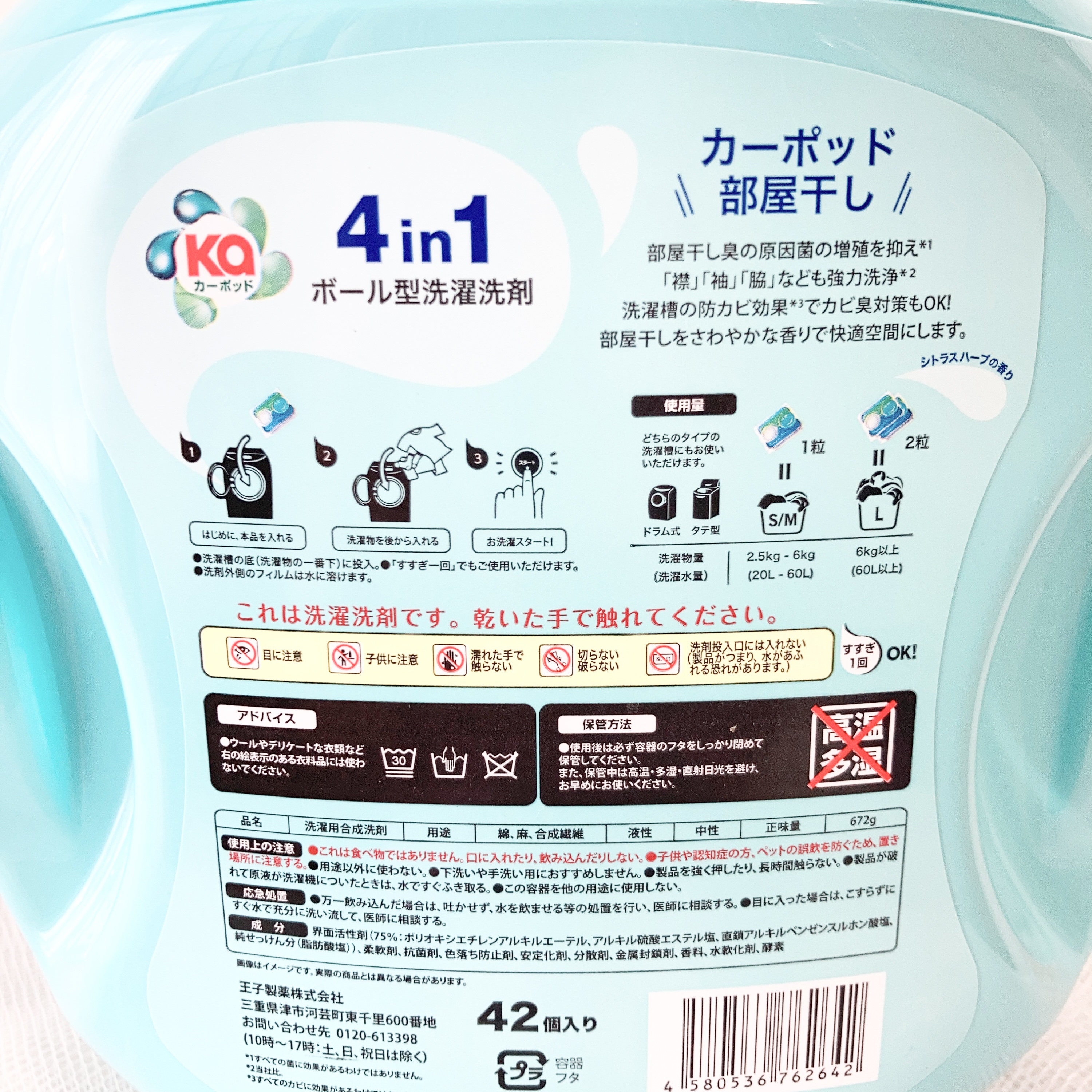 \梅雨の部屋干しにはこれ!/カーポッド部屋干しEX42粒/2,020円(税込)「カーポッド」は最先端技術の応用で、高い洗浄力*と消臭力*1を実現した4in1ボール型洗濯洗剤👕部屋干し特化タイプで部屋干しが増える梅雨にもぴったり!☔使い方も洗濯...