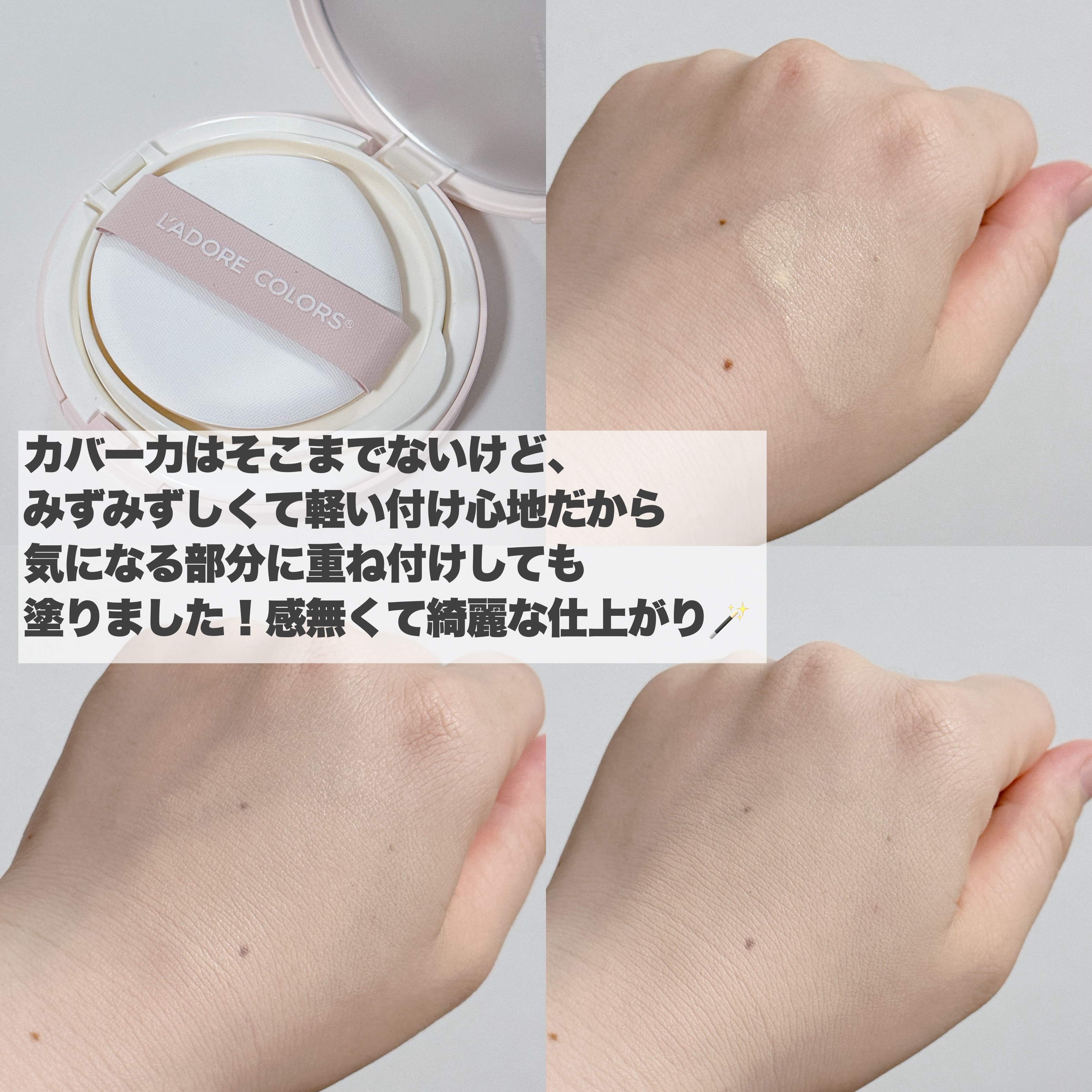 L’ADORECOLORS(ラドレカラー)さまからいただきました。 ୨୧𓏸𓈒𓏸𓈒୨୧L’ADORECOLORS(ラドレカラー)レインコートクッションファンデーション01アイボリーホワイト(FairWhite) ୨୧𓏸𓈒...