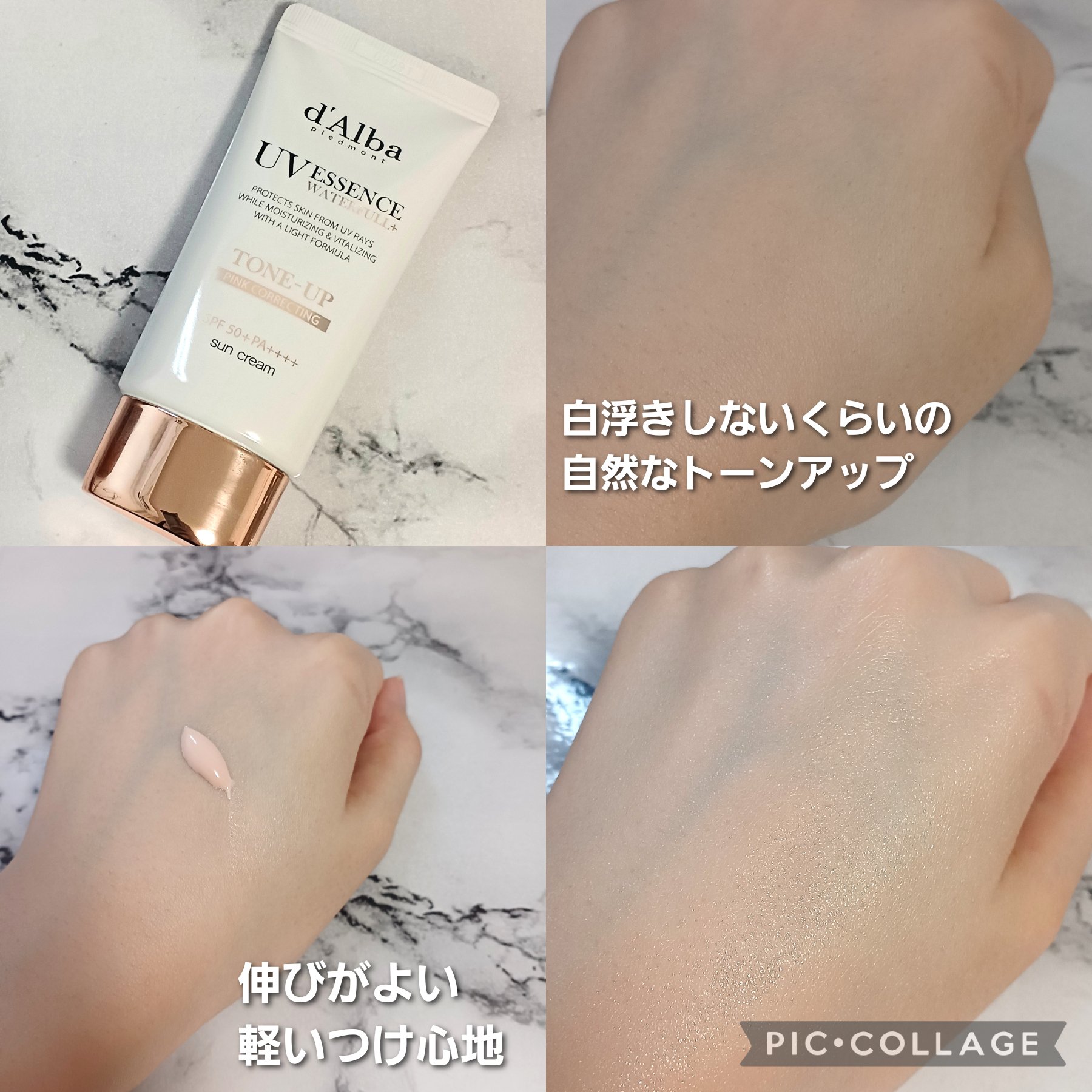 ダルバさまからいただきました🏹ˊ˗d'AlbaウォーターフルトーンアップサンクリームピンクSPF50+・PA++++ダルバの人気アイテムの日焼け止め化粧下地自然なトーンアップ*を演出してくれる🎀ピンクベージュっぽい色味の柔らかく伸びのいいテク...