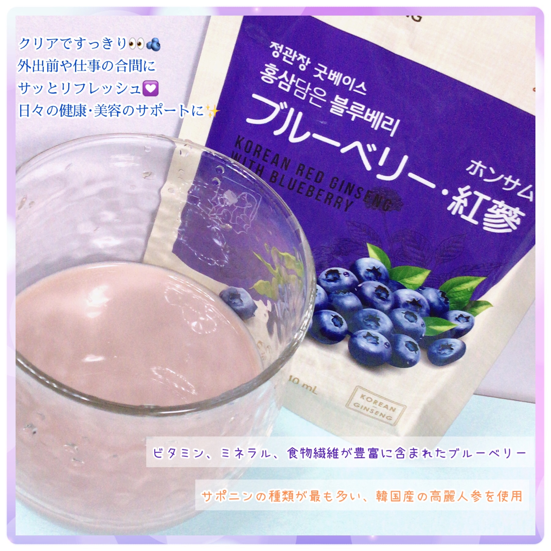正官庄様のSNS投稿キャンペーンでいただきました『ブルーベリー・紅参(ホンサム)‹21袋›』自身の健康のためにかかせない正官庄(ジョンガンジャン)💮お手軽にエネルギーチャージできるから朝ご飯の前に飲んだり、職場のランチ中に飲んだりしてます。ブ...