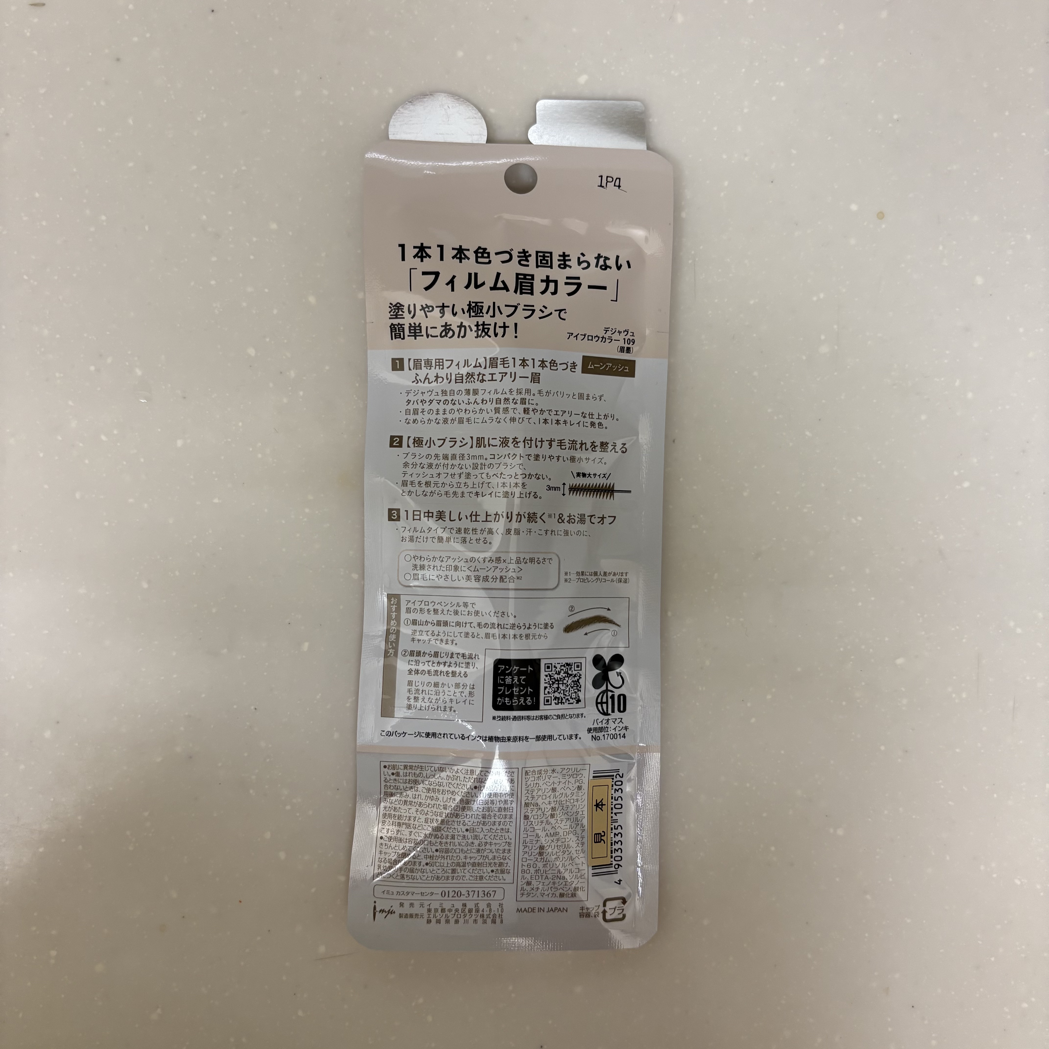 - \\25年3月定番新色モカグレージュ発売// 「フィルム眉カラー」なら眉の印象を自然にやわらげ、ふんわり質感の垢抜け眉に! 1.塗りやすい極小ブラシ ・ 先端直径3mmで、地肌に液がつきにくく根元から色づける ・余分な液がつかない設計で、ティッシュオフ不要 2.眉専用フィルム液 ・眉毛1本1本にキレイに色付き、自眉の黒さをやわらげる ・タバになったり、パリッと固まったりせず、まるで自眉のような仕上がり ・皮脂・汗・こすれに強いのにお湯で簡単オフ (※2025年9月以降、商品パッケージをリニューアル。)