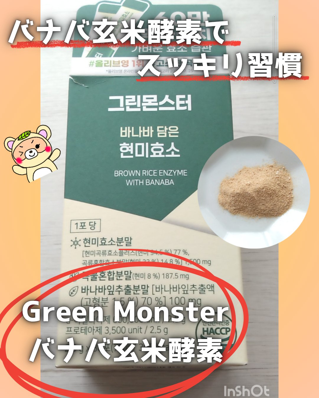 グリーンモンスターバナバ玄米酵素@greenmonster_jpダイエットにも良い、バナバ玄米酵素!1日1包を食後に飲むだけで消化サポートと、ダイエットも同時に。100%自然発酵された、玄米酵素!★力価数値603,500unitバナバ葉エキス...