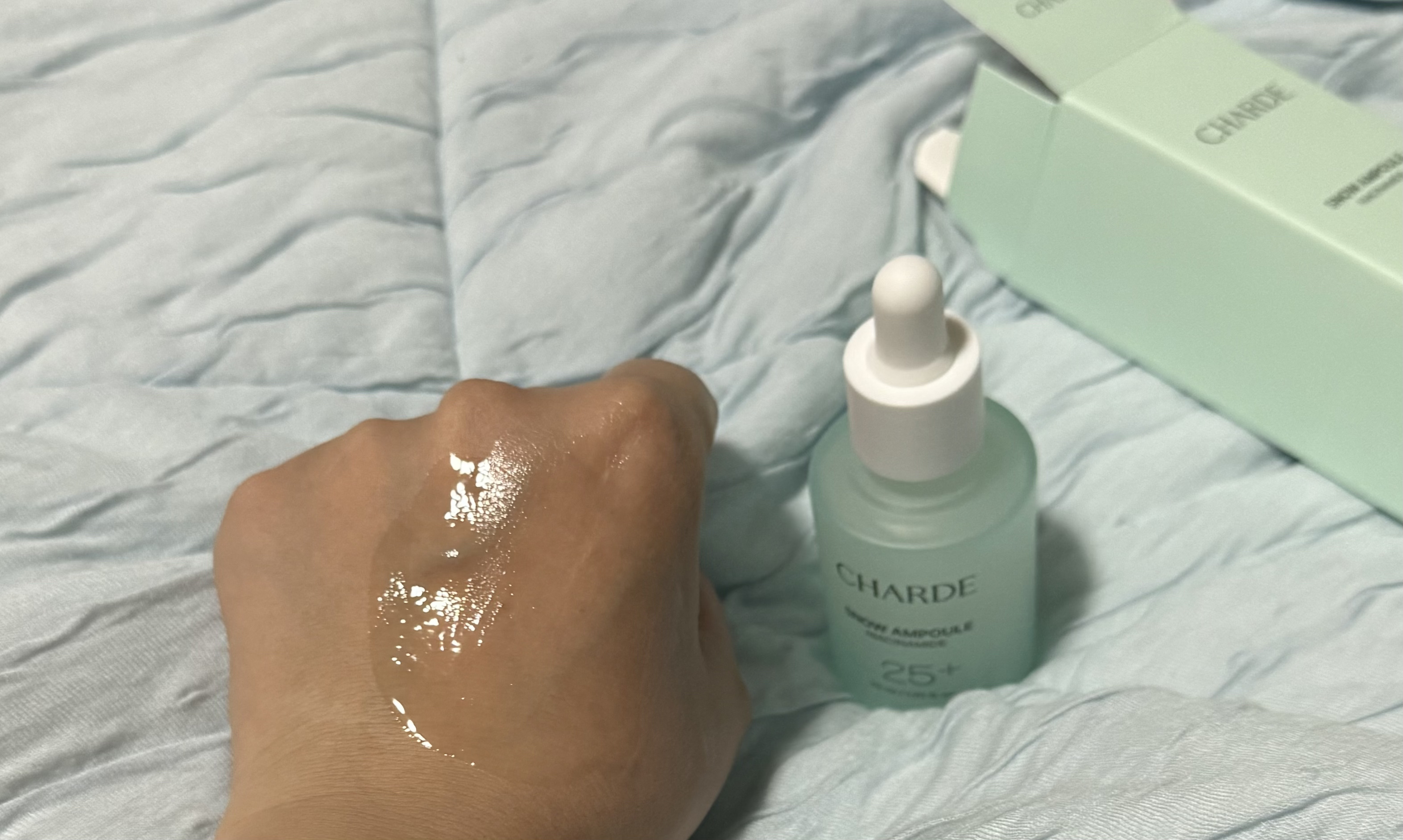 CHARDEスノーアンプル純度99パーセントのナイアシンアミドが25パーセント配合されているアンプル。爽やかな香りが良い香りです。白っぽい感じの色で、とろみがあり糸をひくようなテクスチャーで、伸びが良く肌馴染みが良いです。濃密なアンプルながら...