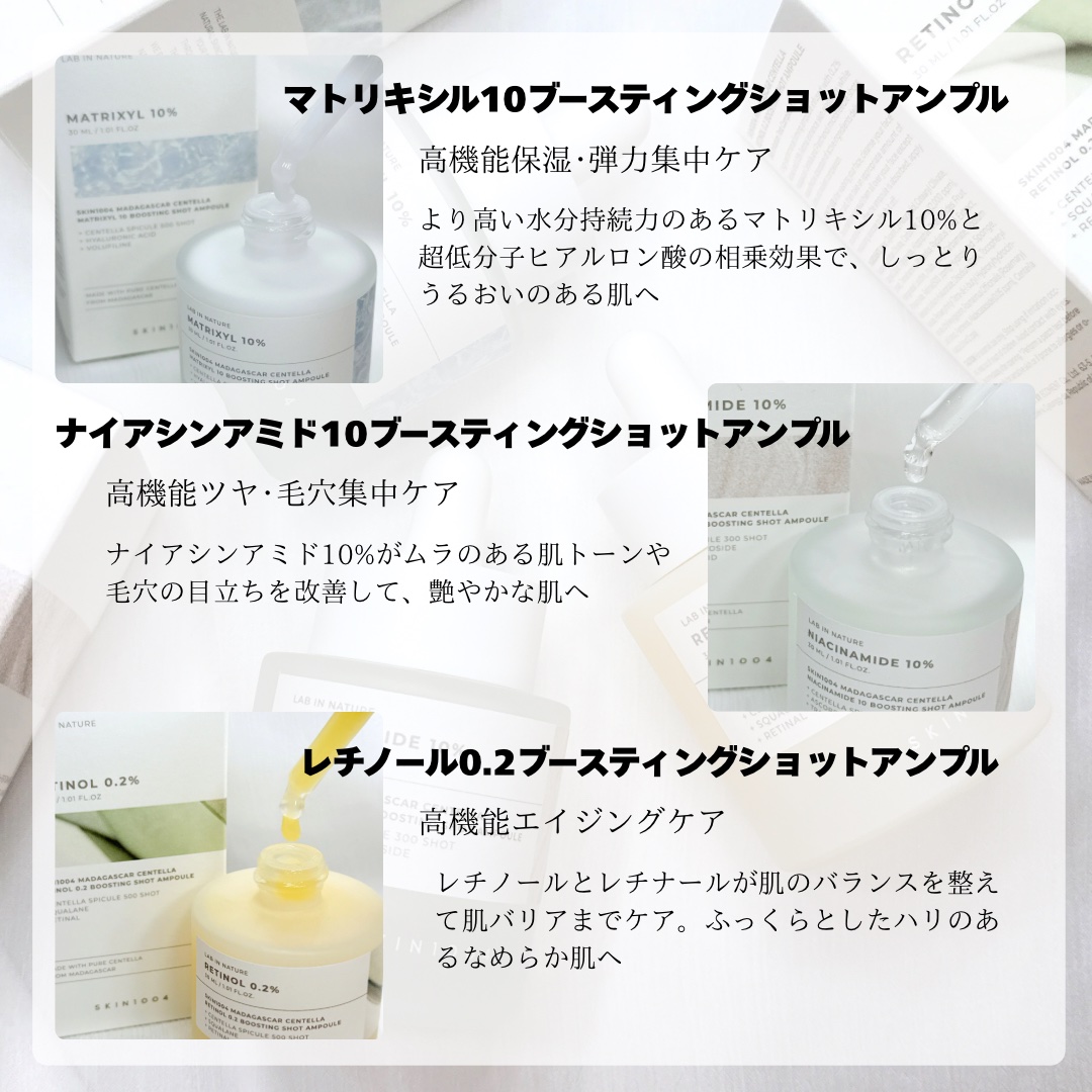 話題のアンプル試してみた🤍SKIN1004さまから提供いただきました。——————————————————SKIN1004レチノール0.2ブースティングショットアンプルナイアシンアミド10ブースティングショットアンプルマトリキシル10ブーステ...