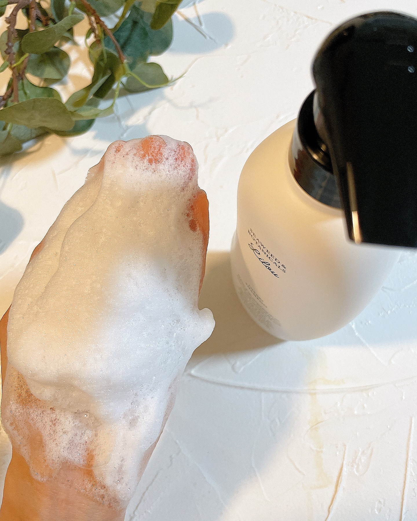 微細なナノバブルを発生させることのできる容器で、使用前にシャカシャカ振って使うよ♩ シャバシャバでさらっとしたテクスチャー。肌馴染みがよく、心地よい使い心地♩ 香りはオレンジ油の甘くみずみずしい香りで、爽やかながら元気が出そうな感じだったよ🍊