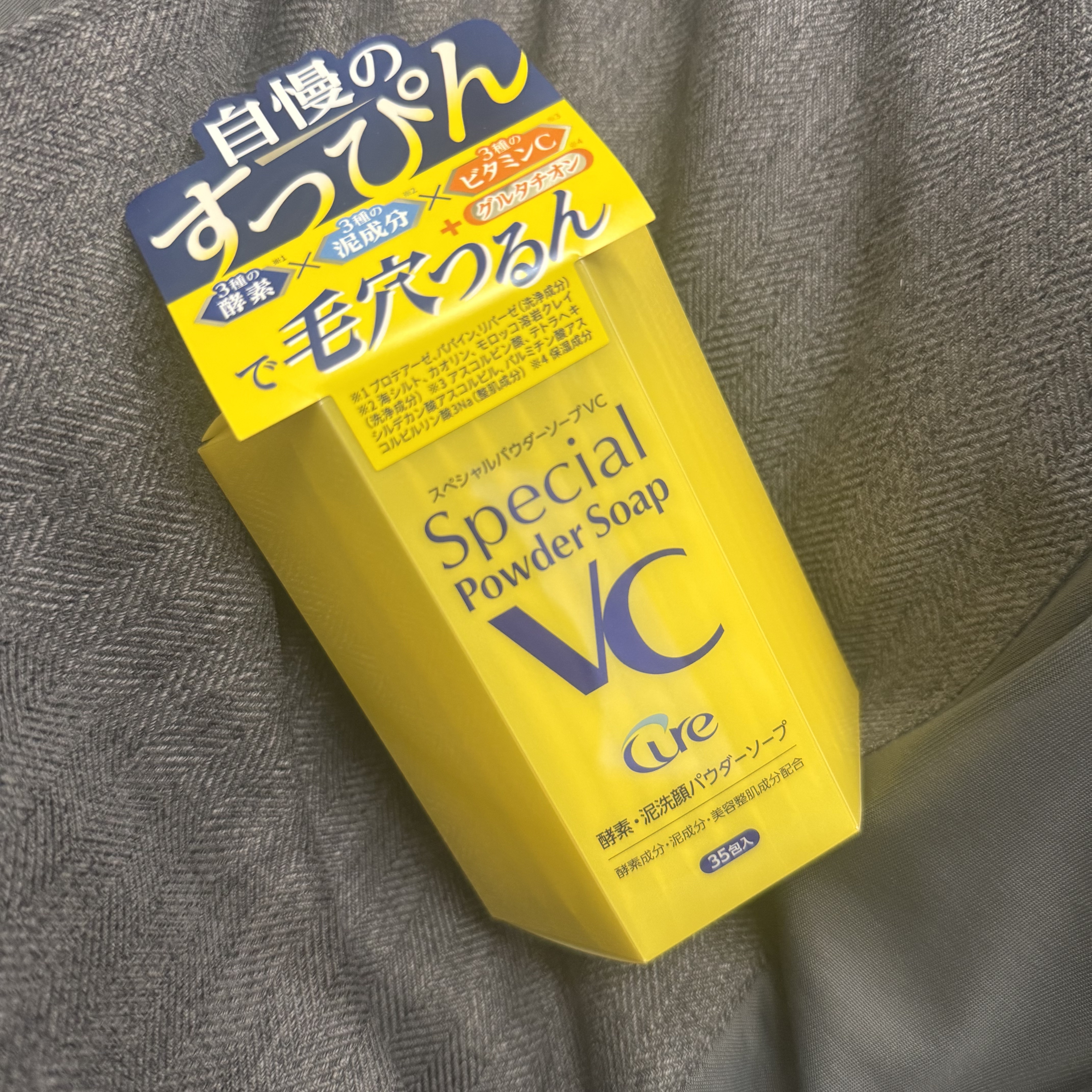 Cure「スペシャルパウダーソープVC」使ってみました😍3種の酵素*1(2種のタンパク質分解酵素・脂肪分解酵素)+3種の泥成分*2(クチャ・ホワイトクレイ・ガスール)+3種のビタミンC*3配合のもちもち吸着泡で、毛穴の黒ずみ汚れ・角栓・ザラつ...